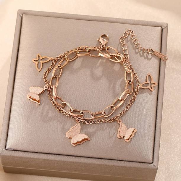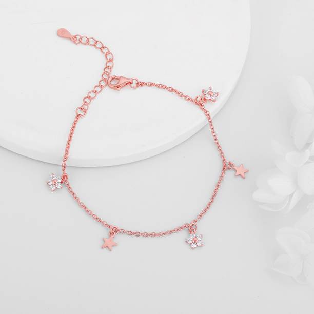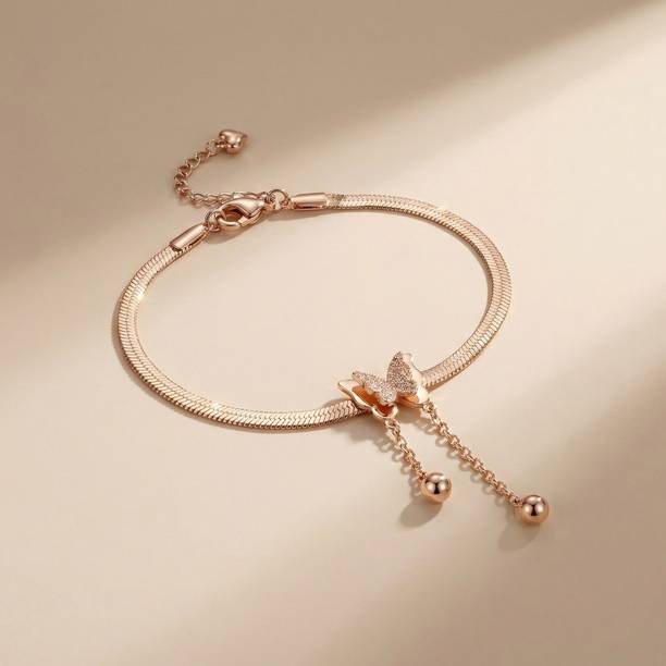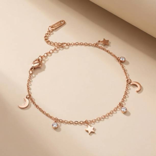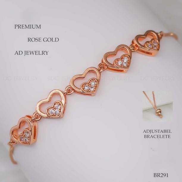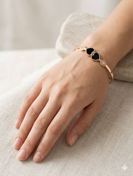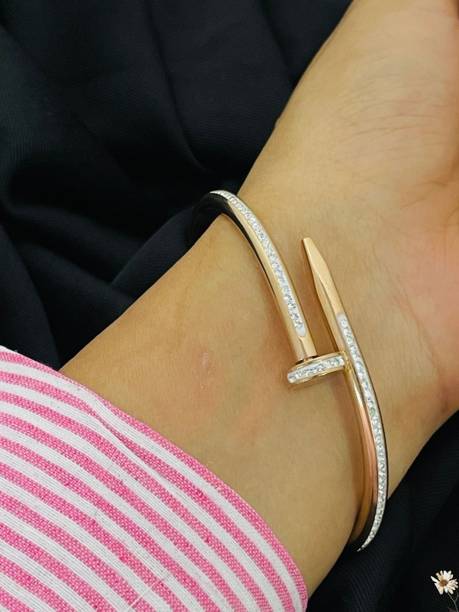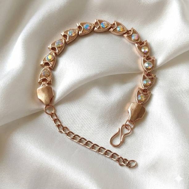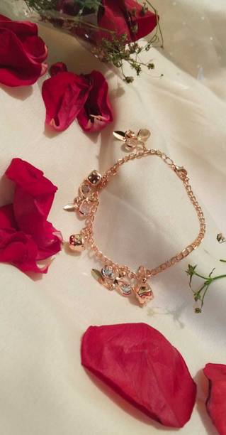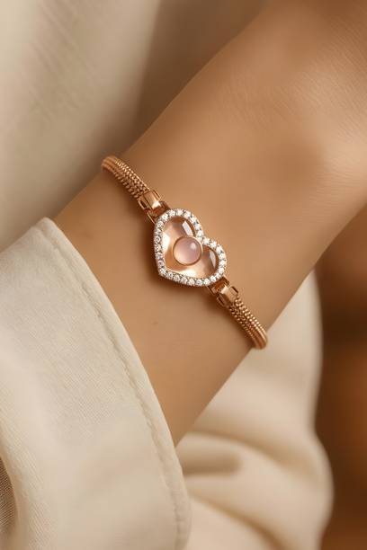 Spruce up your style with dainty rose gold bracelets and ornaments plated in the beautiful hues of pinks. These exquisitely crafted wrist ornaments are available in materials such as brass, bronze, copper, tungsten, zinc, stainless steel, and other alloys. You can opt for bracelets studded with American diamonds, pearls, Swarovski crystals, moonstone, zircons, and other precious or semi-precious stones. Explore from an exquisite collection of rose gold bracelets, armlets, charm bracelets, cuffs, kadas, bangles, hand thongs, ring bracelets, tennis bracelets, and more to pair with your formal, casual, and party attire. Choose from classic minimalistic designs or opt for pieces inspired by flowers, butterflies, geometric shapes, hearts, and more. The rose gold plated bangle watch can be an ideal gifting option for special occasions like birthdays, anniversaries, Valentine’s day, or festivities. You can shop for the latest rose gold bracelets online from popular brands such as Shining Diva, Jaipur Gemstone, Joker and Witch, Stylish Teens, ZAVERI PEARLS, and many more. Add these beautiful pieces of ornaments to your jewellery collection or buy them for the special woman in your life. Shop from the comfort of your home and have them delivered to your doorstep. The information you are reading has been last updated on 17-Apr-26.