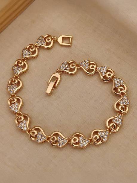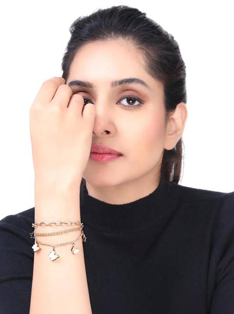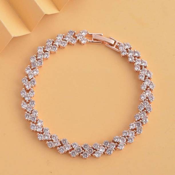 Spruce up your style with dainty rose gold bracelets and ornaments plated in the beautiful hues of pinks. These exquisitely crafted wrist ornaments are available in materials such as brass, bronze, copper, tungsten, zinc, stainless steel, and other alloys. You can opt for bracelets studded with American diamonds, pearls, Swarovski crystals, moonstone, zircons, and other precious or semi-precious stones. Explore from an exquisite collection of rose gold bracelets, armlets, charm bracelets, cuffs, kadas, bangles, hand thongs, ring bracelets, tennis bracelets, and more to pair with your formal, casual, and party attire. Choose from classic minimalistic designs or opt for pieces inspired by flowers, butterflies, geometric shapes, hearts, and more. The rose gold plated bangle watch can be an ideal gifting option for special occasions like birthdays, anniversaries, Valentine’s day, or festivities. You can shop for the latest rose gold bracelets online from popular brands such as Shining Diva, Jaipur Gemstone, Joker and Witch, Stylish Teens, ZAVERI PEARLS, and many more. Add these beautiful pieces of ornaments to your jewellery collection or buy them for the special woman in your life. Shop from the comfort of your home and have them delivered to your doorstep. The information you are reading has been last updated on 13-Jan-26.