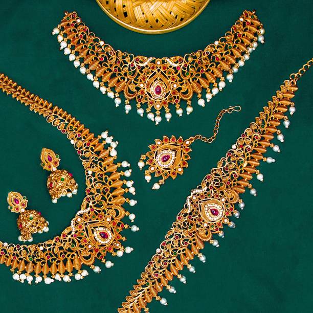 CM FASHIONS One Gram Gold Plated Traditional Trendy Stylish Necklace. Emerald, Ruby Gold-plated Plated Copper Necklace