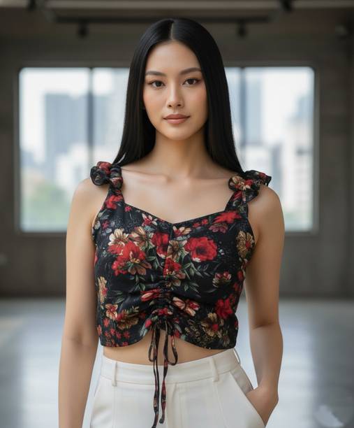 'Ruffle' up a new wardrobe with the must-have ruffle crop top trend that makes you look a little more chic, stylish, and fashionable. These flouncy tops take a simple weekend outfit to a new level of modishness effortlessly. The best part is that these tops come in various prints, patterns, styles, colours, and silhouettes. Style a layered cropped top with ruffles with a pencil skirt to showcase a chic look. A floral print ruffled crop top paired with a fabulous pair of trousers and sneakers creates a fantastic outfit for a casual day outing. Go for a cinched-waist cropped ruffle top with an A-line min skirt for a cute look. Ruffled tops work well for any occasion, no matter where you want to be. Want to laze around on the beach? Look cool doing that with a cropped ruffled top paired with cotton shorts. You can also wear a ruffle crop top with a long skirt for an evening party. You can easily revamp your wardrobe with the classiest ruffled crop tops for women from top brands like AND, Miss Chase, VENI VIDI VICI, PRETTY LOVING THING, Selvia, etc. You can get ruffle crop tops online from all these brands to add to your wardrobe and elevate your style to a new level of awesomeness. Price list last updated on 28-Feb-26.