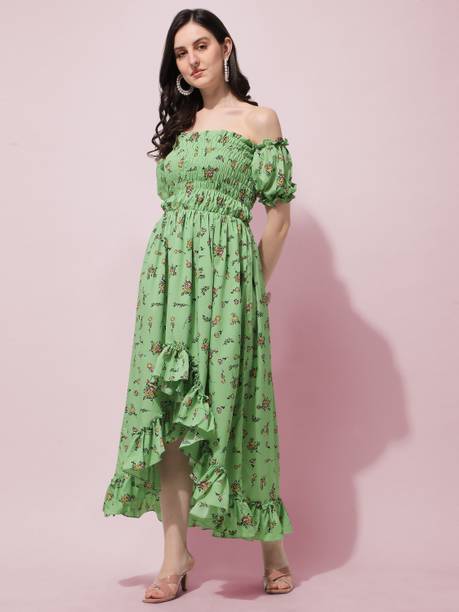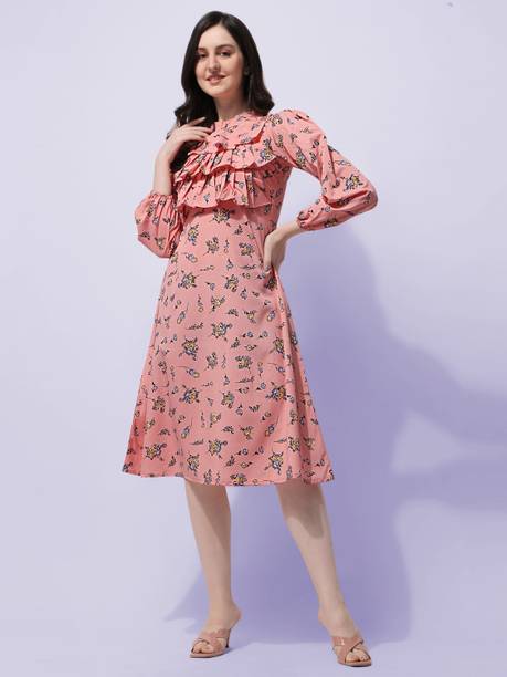 Ruffle dresses are the very definition of feminine fashion statements. These can do wonders to your entire look, especially if you have a petite structure. Ruffles add volume and flair to your outfit at the right places. These layers are excellent in magically taking care of structural flaws in silhouettes without much effort. Though ruffles have a long fashion history, their style quotient has been elevated with ultra-modern hemlines and delicate fabrics like chiffon and georgette. They bring about a soft and flowy characteristic in these dresses, adding a subtle playfulness to your look. Right from runway fashion to our everyday clothes, ruffles have become a significant aspect of modern clothing. Ruffle dresses incorporate a plethora of designs, patterns, prints, fabric variations, and cuts. Based on how and where they are stitched - around the neck area or hemline - ruffles can become the defining aspect of both casual and formal outfits. Crisp and starched ruffles around the neck or cuffs can establish a professional look. However, hemline ruffles on a long chiffon floral dress can give you the quintessential summer-brunch look. Brands such as Miss Chase, Van Heusen, ONLY, Park Avenue, and VERO MODA all offer these trendy ruffle dresses online, where you can sift through and order these products from the comfort of your home.Explore latest collections of ruffle dresses for women online on Flipkart at the best prices. Price list last updated on 12-Oct-25.