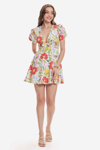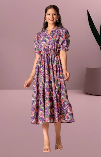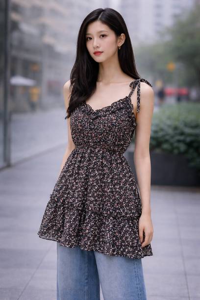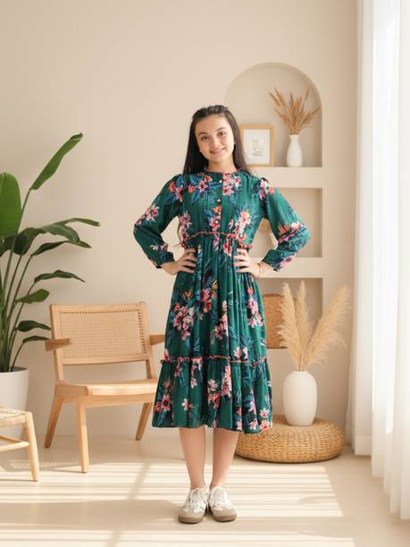 Ruffle floral dresses are a classy and graceful western wear option for women. It comes in various patterns and styles to cater to the preferences of women of all age groups. The ruffles and frills look dainty and pretty and add to the feminine appeal. It is usually constructed out of lightweight and flowy fabrics such as chiffon, pure crepe, polyester, and georgette. It is a great clothing option for spring and summer seasons. You can wear these versatile outfits to casual events, beach vacations, and parties as well. The look depends on how you style the dress to suit the occasion. There are various types of ruffle placements that you can choose from. Shoulder ruffles, diagonal ruffles, ruffle sleeves are some of the fashionable options available. The delicate floral prints in vibrant colours or soft pastel hues elevate the appearance of these dresses, giving them an appealing look. The variety of frilled and flowy sleeve styles like flute sleeves, kaftan sleeves, and petal sleeves add a charming vibe to ruffle floral dresses. You can find a vast collection of ruffle dresses online from brands like SASSAFRAS, Moda Rapido, Miss Chase, VERO MODA, and Kazo. You can select your favourite styles and shop ruffle floral dresses online across e-stores and get them delivered to your doorstep. The information you are reading has been last updated on 17-Apr-26.
