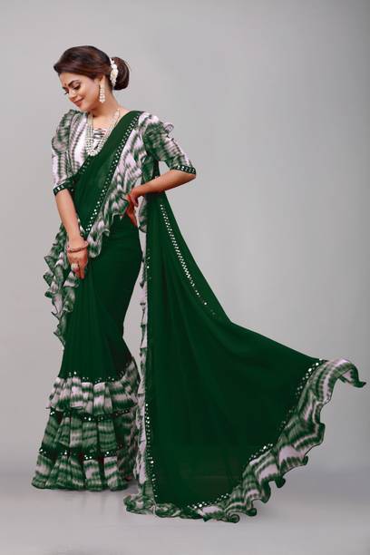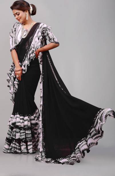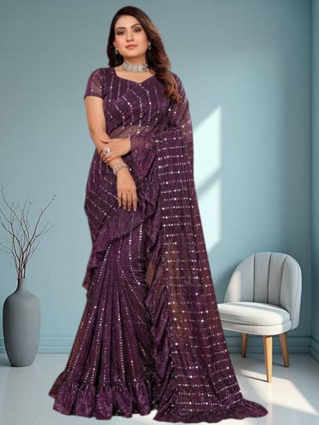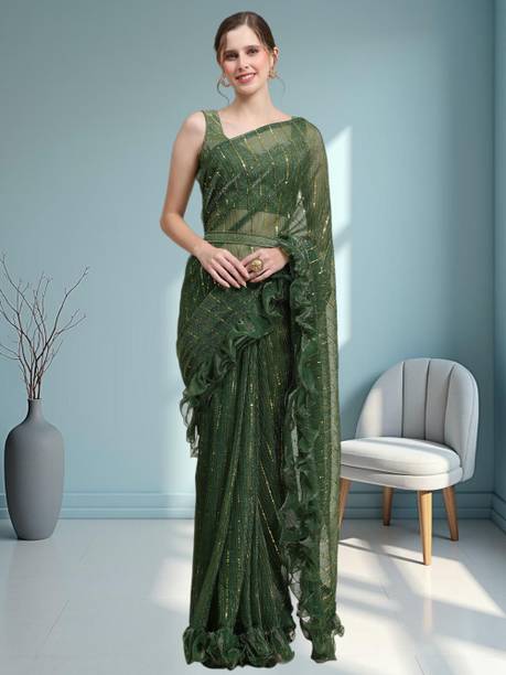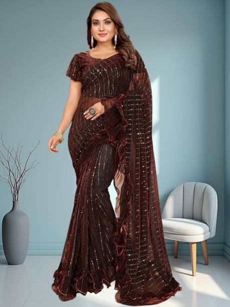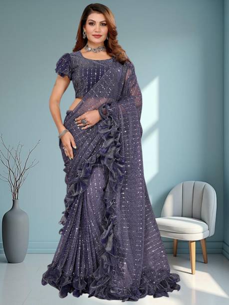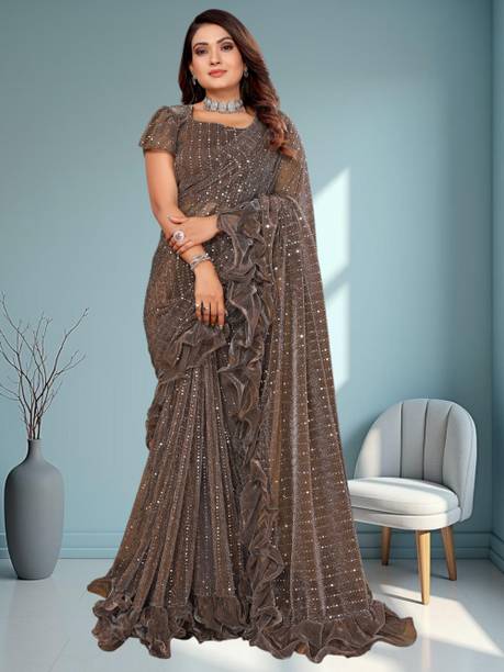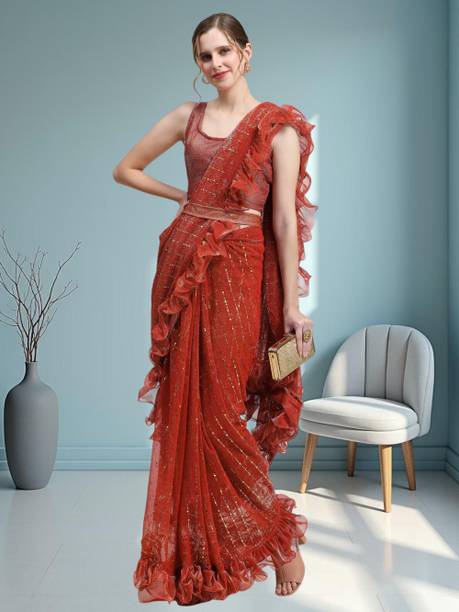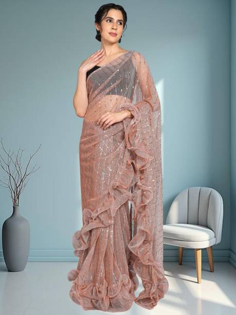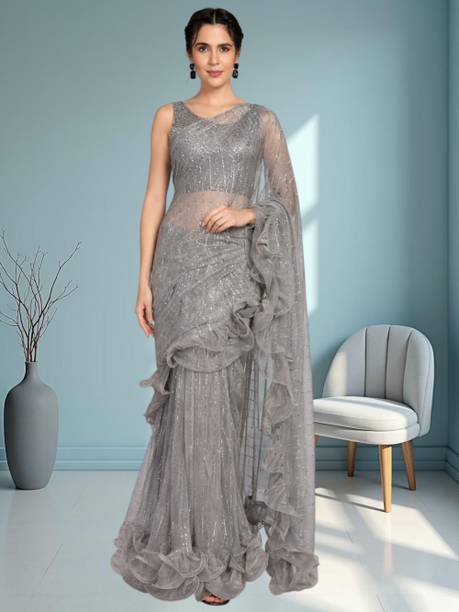 Ruffle sarees blend tradition with a contemporary twist and are an ideal choice for fashion-forward women. These sarees enable you to experiment with your style yet remain with your traditional look. They are known for their ornate frills and cascading layers, exuding an air of elegance and grace. They can be your suitable companion for various occasions, from formal gatherings to casual events. You can explore the latest collection of these sarees on the online store and compare different price ranges. Whether you are attending a wedding, a festive celebration, or a special evening out, these sarees offer an elegant look, making you stand out wherever you go. In addition, you can get these sarees in numerous designs, such as refreshing floral prints, versatile solid patterns, shimmering sequins, intricate embroidered work, and many more. You can select the one that best suits your taste. Pair your saree with trendy jewellery pieces and create a statement wherever you go. You can buy these ruffle sarees online from various brands, such as Ejoty Fashion, Enparmi, Bayja, Jay Ambey Fabrics, Radhey Hub, and many more. Buy your preferred saree online and get convenient delivery. Price list last updated on 08-Apr-26.