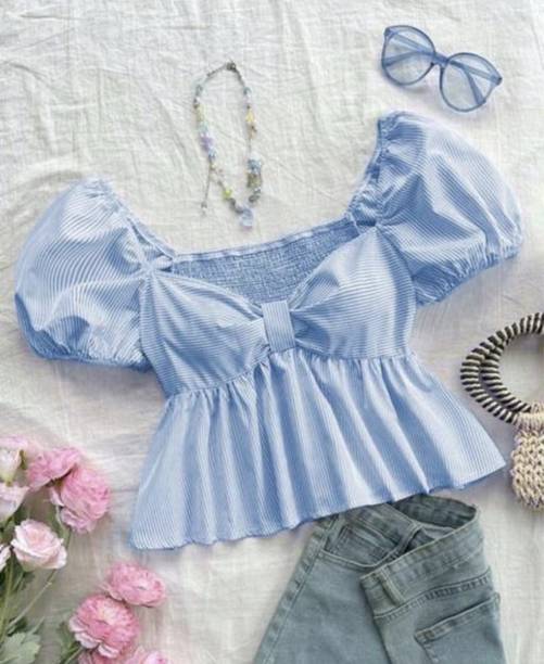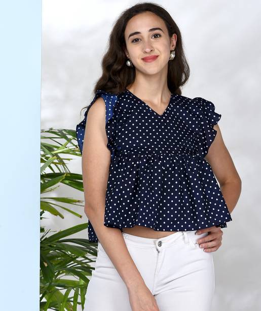 Ruffle tops are one of the most elegant and chic styles of top-wear available for women. They feature layers of fabric that are gathered to form ornamental frills. These frills give a flowy and voluminous appearance to these blouses, making them look dainty and feminine. You can choose different types of tops with ruffles to add to your collection. You can find cute crop tops, peplum tops, asymmetrical tops, and many other styles to add to your eclectic wardrobe collection. You can select an overall frilled variant or opt for tops with ruffled sleeves, frilled necklines, or flowy hems. You can create several looks with these blouses to wear to different occasions and events. You can pair them with fitted trousers or a pencil skirt and go to work. You can also wear them with jeans and denim skirts for a casual yet pretty look. You can pair these flowy blouses with shorts for a lovely vacation outfit. You can choose a solid coloured top or choose from the dainty floral prints, dots, self-design, or animal prints. You can find some of the best styles from brands like Miss Chase, Allen Solly, Harpa, Marks and Spencer, and Dorothy Perkins. You can shop for ruffle tops online across e-stores. The information you are reading has been last updated on 27-Dec-25.