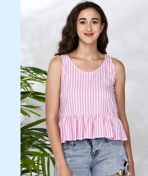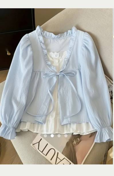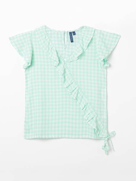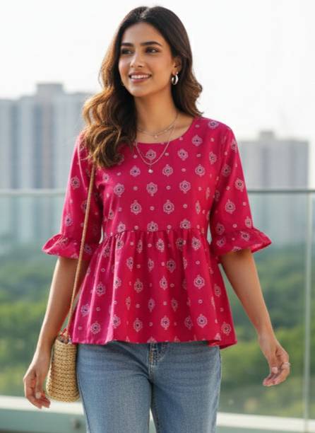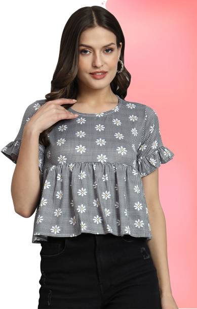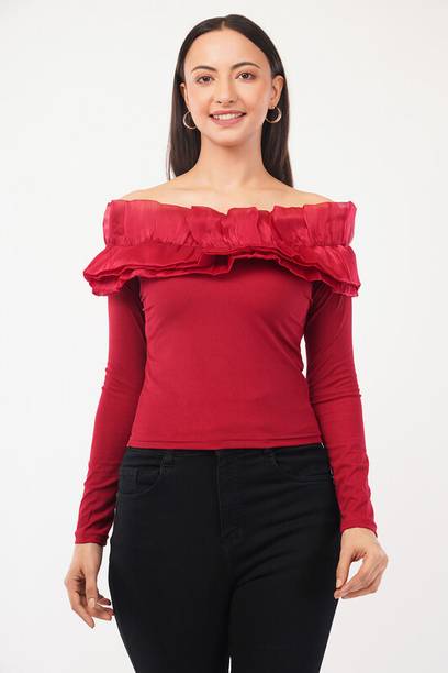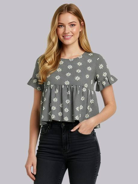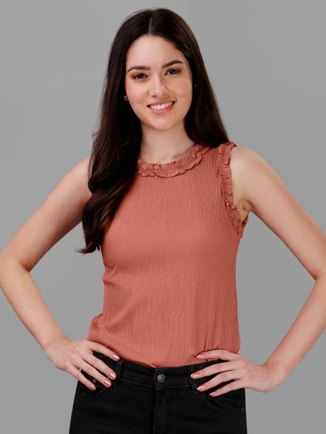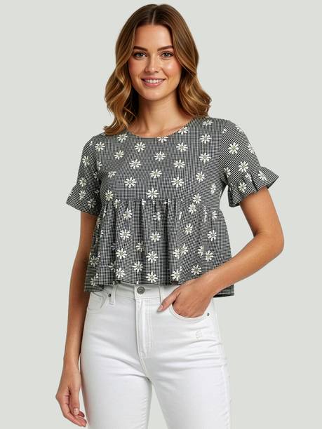 Ruffle tops are one of the most elegant and chic styles of top-wear available for women. They feature layers of fabric that are gathered to form ornamental frills. These frills give a flowy and voluminous appearance to these blouses, making them look dainty and feminine. You can choose different types of tops with ruffles to add to your collection. You can find cute crop tops, peplum tops, asymmetrical tops, and many other styles to add to your eclectic wardrobe collection. You can select an overall frilled variant or opt for tops with ruffled sleeves, frilled necklines, or flowy hems. You can create several looks with these blouses to wear to different occasions and events. You can pair them with fitted trousers or a pencil skirt and go to work. You can also wear them with jeans and denim skirts for a casual yet pretty look. You can pair these flowy blouses with shorts for a lovely vacation outfit. You can choose a solid coloured top or choose from the dainty floral prints, dots, self-design, or animal prints. You can find some of the best styles from brands like Miss Chase, Allen Solly, Harpa, Marks and Spencer, and Dorothy Perkins. You can shop for ruffle tops online across e-stores. The information you are reading has been last updated on 21-Feb-26.
