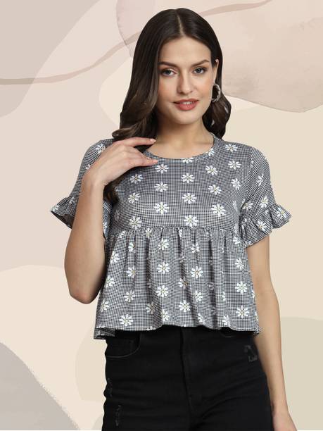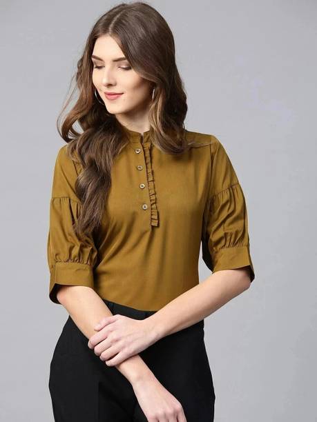 Ruffle tops are one of the most elegant and chic styles of top-wear available for women. They feature layers of fabric that are gathered to form ornamental frills. These frills give a flowy and voluminous appearance to these blouses, making them look dainty and feminine. You can choose different types of tops with ruffles to add to your collection. You can find cute crop tops, peplum tops, asymmetrical tops, and many other styles to add to your eclectic wardrobe collection. You can select an overall frilled variant or opt for tops with ruffled sleeves, frilled necklines, or flowy hems. You can create several looks with these blouses to wear to different occasions and events. You can pair them with fitted trousers or a pencil skirt and go to work. You can also wear them with jeans and denim skirts for a casual yet pretty look. You can pair these flowy blouses with shorts for a lovely vacation outfit. You can choose a solid coloured top or choose from the dainty floral prints, dots, self-design, or animal prints. You can find some of the best styles from brands like Miss Chase, Allen Solly, Harpa, Marks and Spencer, and Dorothy Perkins. You can shop for ruffle tops online across e-stores. The information you are reading has been last updated on 11-Jan-26.