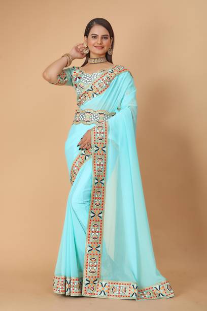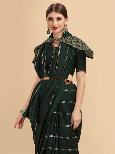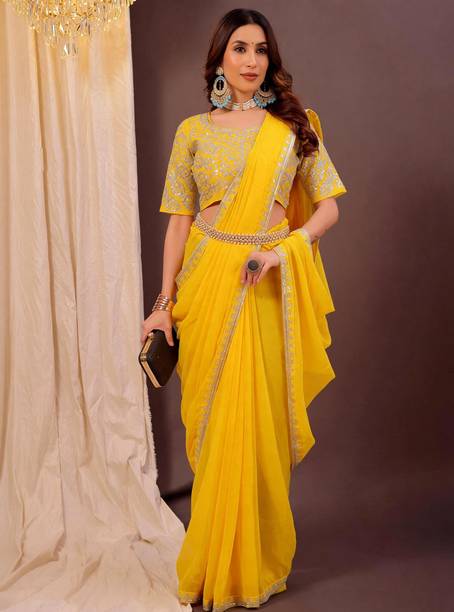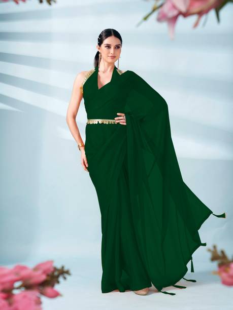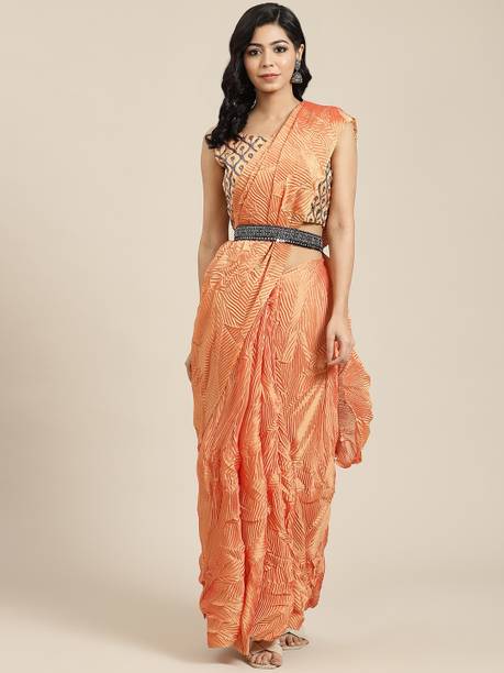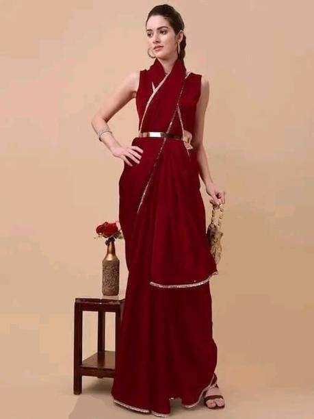 Look stunning by pairing your saree with (a) belt. You can choose a drape option with a slim belt or a broad one based on the saree design and your build. You can opt for sarees in materials like chiffon, georgette, lycra blend, silk blend, and more. A lightly embroidered drape is suitable for party wear, while a heavily embroidered saree is ideal for special occasions, festive functions, and weddings. Choose sarees in solid colours, vibrant prints, self-design patterns, or heavily embroidered options. The belts are available separately with the saree, or you can choose the ones attached with the blouse. Some belts are sleek with minimum design, while others are broad with detailed embellishment. You can go for the belts with straight aligned borders or patterned belts. The belt will hold your saree in place besides adding extravagance to your attire and accentuating your curves. You can also find a matching saree with (a) belt for your little princess and twin in style for social media uploads. You can check out waist belts for sarees offered by brands like ShiVAdit Ethnic, Cute Fellow, westro culture, RudraAsavari Creation, NAVLIK, and many more. Place your order for sarees and accessories online to get doorstep delivery.