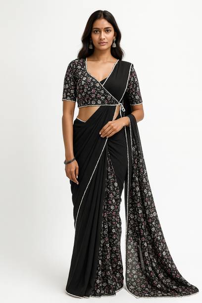 The sheer elegance and charm of ethnic sarees is unmatchable. Most women will agree to the fact that sarees with readymade blouses are a blessing. With a ready to wear matching blouse, you don't have to worry about going to a tailor and explain to them the exact cut, style, or design; You also dont have to spend time giving measurements, which is often time-consuming. A well-fitted blouse enhances the charm of a plain saree, whereas an ill-fitted and boring blouse can take away the appeal of even a designer saree. Elevate your style quotient and pick your favourite six-yard drape with a blouse, picking from the myriad options of colours, designs, patterns, and fabrics to suit your liking and personality. Designer sarees with readymade blouses can be accessorised with complementing jewellery for an eye-catching ensemble. Choose from different blouse patterns that exude grace, elegance, and class. The classic jacket blouses are the best examples of traditional Indian designs and clothing styles. Browse and choose from the latest saree with readymade blouses online from brands like Flip The Style, Rashiklal & Co., Niyami, Fancy Fab, For and Ever, Glance Fashion, and many others. The information you are reading has been last updated on 07-Oct-25.