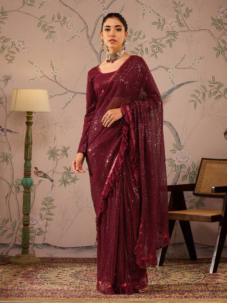 The sheer elegance and charm of ethnic sarees is unmatchable. Most women will agree to the fact that sarees with readymade blouses are a blessing. With a ready to wear matching blouse, you don't have to worry about going to a tailor and explain to them the exact cut, style, or design; You also dont have to spend time giving measurements, which is often time-consuming. A well-fitted blouse enhances the charm of a plain saree, whereas an ill-fitted and boring blouse can take away the appeal of even a designer saree. Elevate your style quotient and pick your favourite six-yard drape with a blouse, picking from the myriad options of colours, designs, patterns, and fabrics to suit your liking and personality. Designer sarees with readymade blouses can be accessorised with complementing jewellery for an eye-catching ensemble. Choose from different blouse patterns that exude grace, elegance, and class. The classic jacket blouses are the best examples of traditional Indian designs and clothing styles. Browse and choose from the latest saree with readymade blouses online from brands like Flip The Style, Rashiklal & Co., Niyami, Fancy Fab, For and Ever, Glance Fashion, and many others. The information you are reading has been last updated on 11-Oct-25.