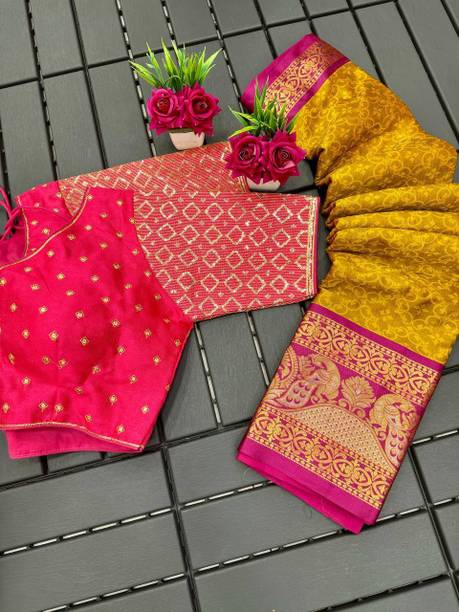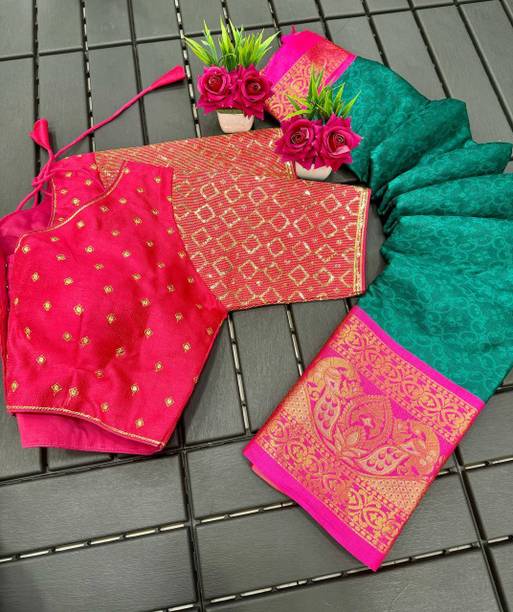 The sheer elegance and charm of ethnic sarees is unmatchable. Most women will agree to the fact that sarees with readymade blouses are a blessing. With a ready to wear matching blouse, you don't have to worry about going to a tailor and explain to them the exact cut, style, or design; You also dont have to spend time giving measurements, which is often time-consuming. A well-fitted blouse enhances the charm of a plain saree, whereas an ill-fitted and boring blouse can take away the appeal of even a designer saree. Elevate your style quotient and pick your favourite six-yard drape with a blouse, picking from the myriad options of colours, designs, patterns, and fabrics to suit your liking and personality. Designer sarees with readymade blouses can be accessorised with complementing jewellery for an eye-catching ensemble. Choose from different blouse patterns that exude grace, elegance, and class. The classic jacket blouses are the best examples of traditional Indian designs and clothing styles. Browse and choose from the latest saree with readymade blouses online from brands like Flip The Style, Rashiklal & Co., Niyami, Fancy Fab, For and Ever, Glance Fashion, and many others. The information you are reading has been last updated on 07-Oct-25.