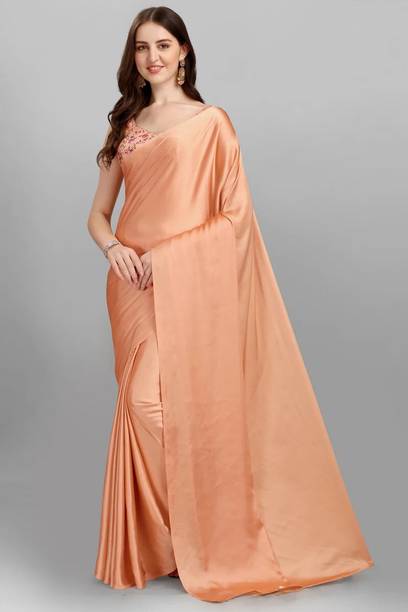 Satin sarees are known for their lustrous texture and exquisite drape. These sarees have a distinct, shiny surface that reflects light beautifully and is suitable for various occasions. Despite their glossy appearance, these sarees are known for their softness and comfort. Satin is a free-flowy fabric that feels gentle against the skin. They are easy to drape and comfortable to wear. You can select this saree from numerous colour and design options. The latest sarees can be found in solid hues, subtle pastels, bold and vibrant shades, and even in intricate prints or embroidery. In addition, these sarees can be paired with various trendy blouse styles to create stylish traditional or contemporary looks. The blouse can be paired with the saree's colour to offer a complete look to your ensemble. A satin saree is a choice for many occasions, whether it is a wedding, party, festivity, formal dinner, or any other occasion. You can buy these sarees online at varied prices from brands like Anand Sarees, Fabian Fashion, Fashion Ritmo, Villagius, Samah, and many more. Shop online for the sarees that best suit your requirements and get them conveniently delivered to your doorstep. Explore the latest collections of satin sarees in various colours & designs on Flipkart at the best prices. Price list last updated on 15-Jan-26.