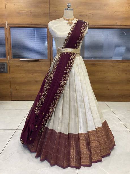 Women who love a body-flattering outfit should opt for semi-stitched lehengas as they can be customised to fit you perfectly. Lehengas are traditional full-length skirts that come with an intricately worked designer blouse and a matching dupatta. Lehengas offer you an elegant and graceful look making them the perfect attire for an Indian wedding. You can pick from fabrics like silk, cotton, satin, georgette, and crepe according to your taste and style. Choose from a plethora of colours to match your mood for the day and the occasion. For a special occasion, choose from a collection of intricately embroidered lehengas or beautifully embellished ones. Skirt design options include the traditional straight cut, jacquard, and the A-line variant. You can also pick the fishtail or mermaid style for a contemporary look. A wide variety of blouse options are also available, including off-shoulder, high neck, and scoop neck. You can opt for a stylish crop top or a jacket for a modern and contemporary aura. Buy from the latest semi-stitched lehenga collection online and be the fashion queen. Choose from top brands that offer semi-stitched lehengas, including Dirndl, LEXMA FASHION, SELUXA, VM TEJANI, RamKrupa Creation, BIPIN FASHION, and many more. Pick your favourites and order online.The information you are reading has been last updated on 10-Oct-25