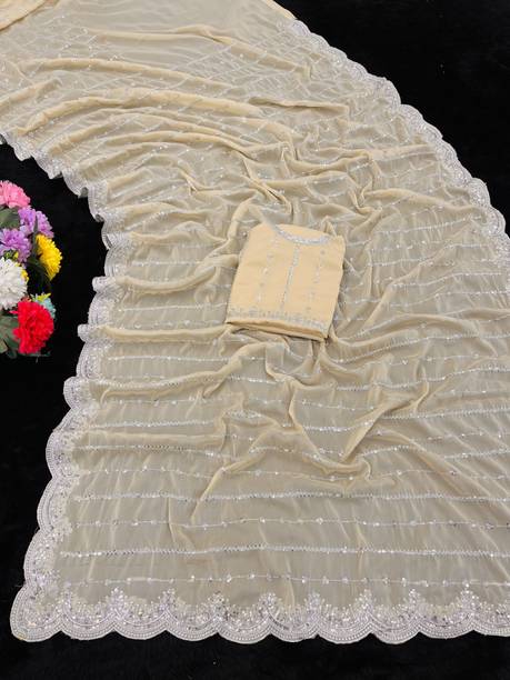Sequin sarees are a dazzling and glamorous choice for numerous occasions. These sarees are a must-have if you are a fashion enthusiast. When it comes to making a statement at any celebration, the allure of these drape-wears makes them a go-to option. These eye-catching ethnic options exude glamour and sophistication, blending traditional charm with a contemporary twist. Whether it's a wedding, a festive gathering, or others, sequin drape-wear options can be your ideal choice to shine. You can buy glitter sarees in various designs from brands like Divastri, Samah, Soch, Anand Sarees, Sareemall, Yashika, and others available online. The tiny and shimmering sequins that are intricately sewn onto the fabric create a mesmerising play of light, which can make you look party-ready in no time. From an array of colour options, you can opt for black sequin sarees, among others, as they are versatile and allow you to drape and style them in various ways. You can get these sarees in fabric options like art silk, brasso, chanderi, chiffon, cotton blend, cotton jute, and others. To look glamorous on special events, you can search for sequence sarees that feature intricate embroidery work, enhancing your overall look. Swipe and select desired sequin sarees available online and make a secure payment to get doorstep delivery. Explore latest collections & designs of Sequin Sarees online on Flipkart at best prices. Price list last updated on 22-Jan-26.