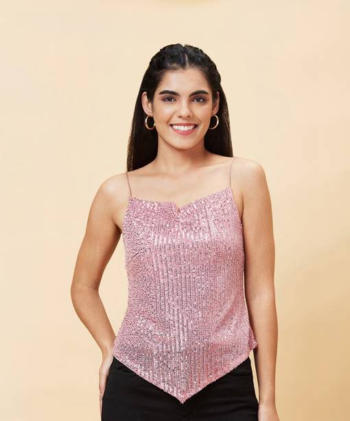 There are ruffle tops, crop tops, striped tops, floral tops, gold tops, lace tops , cold shoulder tops type, and many other styles of sequin tops. So, you can easily find a sequin top to complement your figure and meet your requirements. While buying sequin tops online, you can also go for different designs, such as tops with embellishments, tops with polka prints, printed sequin tops, self-design tops, etc. You can also choose the style of the sleeve of your sequin top while shopping from online shopping sites. You can buy a top with 3/4th sleeves, bell sleeves, butterfly sleeves, cap sleeves, half sleeves, full-sleeves, or even sleeveless tops. Sleeveless sequin tops are comfortable to wear during summers and you can always style these tops the way you want. You can wear a bomber jacket or shrug with the sleeveless tops to personalise your top.