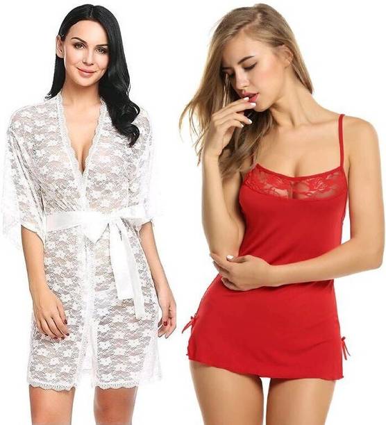 Look ravishing and sensuous on your honeymoon with sexy wedding dresses available in a plethora of styles, designs, and patterns online. Browse through the collection of sexy wedding dresses in vibrant colours and prints to celebrate your special time together. These honeymoon wedding dresses are available in delicate fabrics like silk, satin, lace, net, nylon, cotton blends, and more for your comfort. Choose from a wide range of options like nighty with robe, babydoll, lingerie with robe set, bra and panty set, chemise, night suits, kaftan, sheaths, and more. You can also check for accessories like fishnet stockings and delicate lingerie in lace and net. Whether you are headed towards the beach, the mountains, or exotic locales to celebrate your bonding, you can pack these beauties for your intimate moments together. Shop for apparel and accessories from the comfort of your home and have them delivered to your doorstep, hassle-free. Explore a vast range of honeymoon essentials from brands such as Rangmor, NOVUM Fashion Style, Embrave, Urban Creation, SSoShHub, and more. Shop online to avail benefits like a wide selection of options, multiple payment modes, and convenient doorstep delivery. The information you are reading has been last updated on 25-Oct-25.