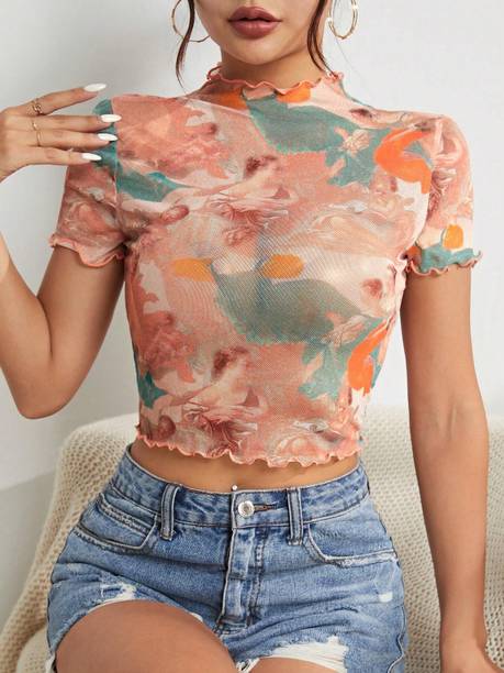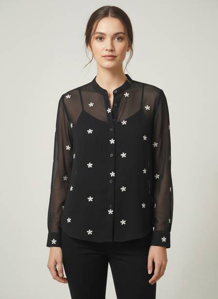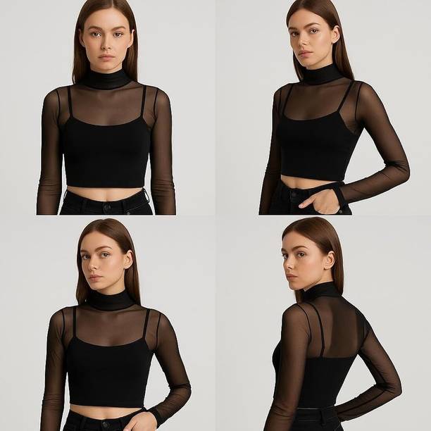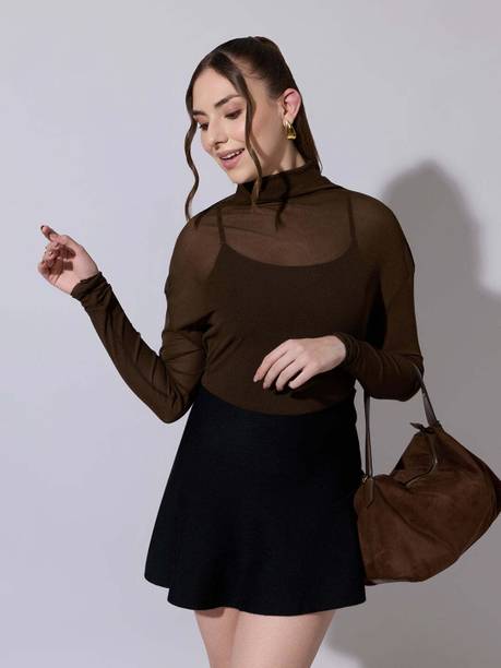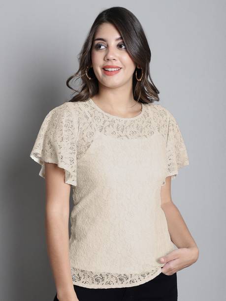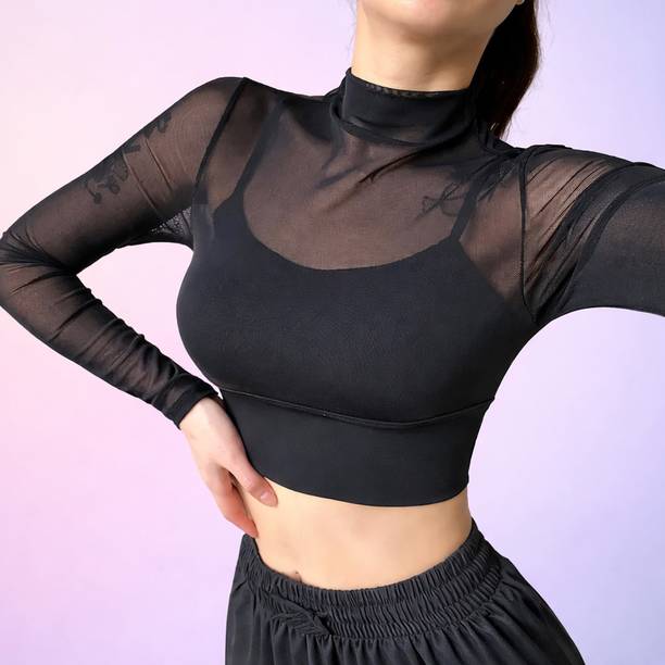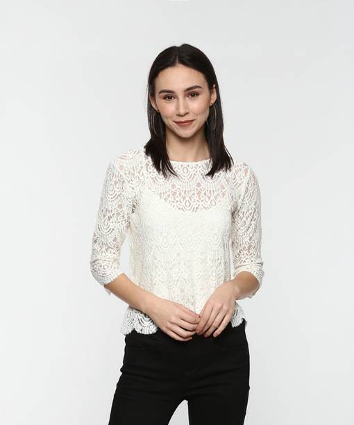 Sheer tops are lightweight, super-stylish garments that can effortlessly elevate your style quotient. Made of see-through fabrics for various degrees of transparency like lace, mesh, and chiffon, these are styled with various patterns, prints, and needlework. More commonly worn during summers for their airy, breathable fabric, you can easily create a winter look by layering them up with long jackets or heavy blazers. For a casual day out, wear a sheer blouse with a bright razorback and a pair of shorts or capris. But don't restrict their sheerness to casual events only. Try these with a designer camisole or bralette with formal trousers to look chic and polished for a formal dinner or office party. You can browse through an exclusive range of sheer tops in a plethora of patterns, styles, and colours. Brands such as The Label Life, CODE, French Connection, Forever 21, and Twenty Dresses have sheer designs that can be styled with formal lehenga skirts at a mehendi ceremony or a skin-tight pair of jeans and high-heeled boots. Whatever the mood, you can find a regular, slim, or oversized sheer top online to create simple yet trendsetting outfits.Explore latest collections of sheer tops for women online on Flipkart at the best prices. Price list last updated on 05-Mar-26.
