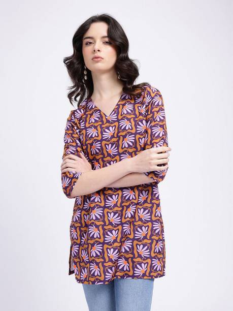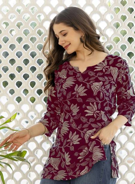 Short kurtis for women are a comfortable option for ladies in the office as well as in college. Their length makes them ideal for women who are active outdoors. These ethnic garments are available in all sizes ranging from XS to 7XL. You can wear them to family gatherings, your workplace, religious festivals, marriage ceremonies, etc. They are available in fabrics such as cotton silk, crepe georgette, fleece, hosiery, silk blend, etc. You can look flawlessly beautiful in straight, Anarkali, frontslit, gowns, Kaftan, Pathani, and flared kurtis. You can pair these up with traditional jewellery pieces like jhumkas, bangles, rings, necklaces, etc. If you wear it to the office instead, you can add a wristwatch, a bindi, and a simple pendant. You can get the latest short kurtis for women in prints like tropical prints, mottled prints, Kantha embroidery, Rajasthani mirrors, velvet work, foiled prints, and more. Choose from ankle length, hip length, or calf-length kurtis with various sleeve options ranging from the full sleeve, short sleeve, three-fourth sleeves, etc. You can find the perfect short kurtis for women available in beautiful shades of blue, red, pink, maroon, brown, etc. You can check out popular brands like SATVEER FASHION, TextileFab, SRITIKA, Alka Hari, BE Indi, etc. The information you are reading has been last updated on 21-Oct-25.