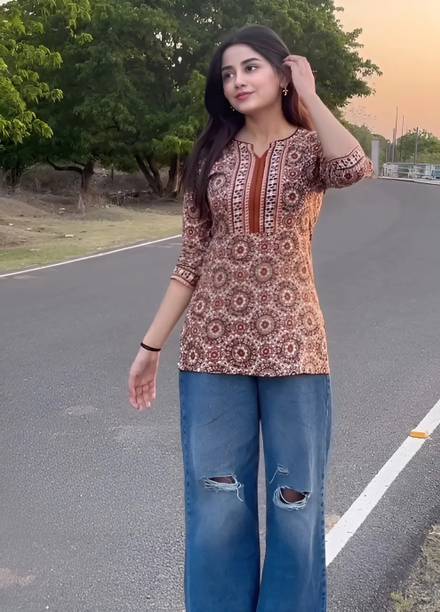Short kurtis for women are a comfortable option for ladies in the office as well as in college. Their length makes them ideal for women who are active outdoors. These ethnic garments are available in all sizes ranging from XS to 7XL. You can wear them to family gatherings, your workplace, religious festivals, marriage ceremonies, etc. They are available in fabrics such as cotton silk, crepe georgette, fleece, hosiery, silk blend, etc. You can look flawlessly beautiful in straight, Anarkali, frontslit, gowns, Kaftan, Pathani, and flared kurtis. You can pair these up with traditional jewellery pieces like jhumkas, bangles, rings, necklaces, etc. If you wear it to the office instead, you can add a wristwatch, a bindi, and a simple pendant. You can get the latest short kurtis for women in prints like tropical prints, mottled prints, Kantha embroidery, Rajasthani mirrors, velvet work, foiled prints, and more. Choose from ankle length, hip length, or calf-length kurtis with various sleeve options ranging from the full sleeve, short sleeve, three-fourth sleeves, etc. You can find the perfect short kurtis for women available in beautiful shades of blue, red, pink, maroon, brown, etc. You can check out popular brands like SATVEER FASHION, TextileFab, SRITIKA, Alka Hari, BE Indi, etc. The information you are reading has been last updated on 22-Oct-25.