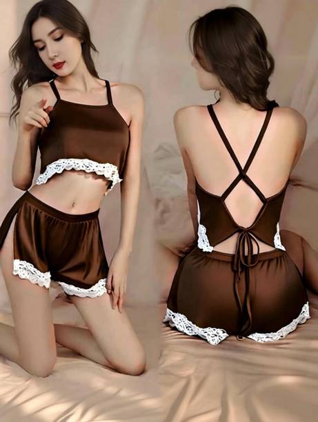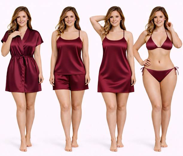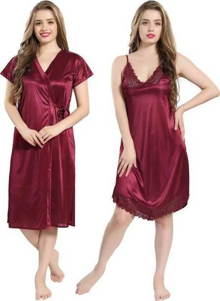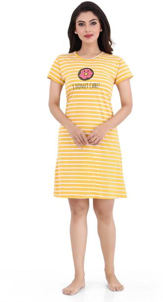 A short nightdress is a snug night garment worn by women of different ages. You can look at a variety of these latest dresses that include top and shorts sets, robes, short nighties, and many more. They come in different sizes and colour combinations. You can choose from different patterns such as ombre, polka dots, printed, checkered, colour block, solid, floral, striped, etc. Girls love to sport these new night clothes that offer comfort and poise. With multiple fabric options such as pure cotton, viscose, satin, polyester, crepe, rayon, alpine, etc., and blends like alpine cotton, bizzi Lizzi, chiffon, cotton hosiery, lycra, and more, you will be spoilt for choice. Find the right size for you or your loved ones, as these night clothes make a sound gifting option too. Chose from trendy necklines like round, v neck, square, boat, sweetheart, tie-up, halter, noodle strap, and more. You can choose from packs of two or more as per your requirements. Some night sets come with robes, especially the sleeveless and strappy types like in saree dress. You may also choose the type of robe you prefer. Buy a short nightdress from trusted brands such as Dreamz by Pantaloons, Cherry Crumble, Christy World, Clovia, DreamBe, etc. Order online for convenient doorstep delivery. The information you are reading has been last updated on 18-Jan-26.