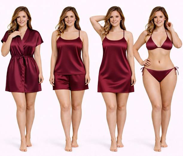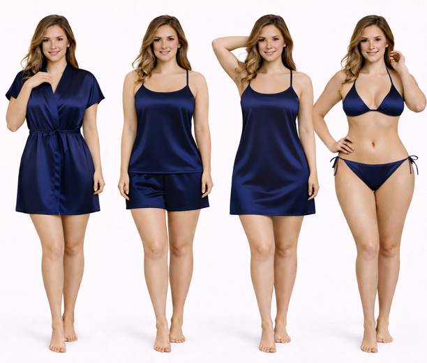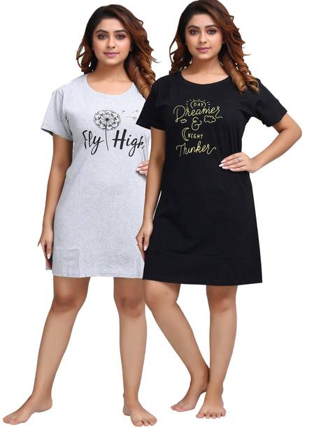 A short nightdress is a snug night garment worn by women of different ages. You can look at a variety of these latest dresses that include top and shorts sets, robes, short nighties, and many more. They come in different sizes and colour combinations. You can choose from different patterns such as ombre, polka dots, printed, checkered, colour block, solid, floral, striped, etc. Girls love to sport these new night clothes that offer comfort and poise. With multiple fabric options such as pure cotton, viscose, satin, polyester, crepe, rayon, alpine, etc., and blends like alpine cotton, bizzi Lizzi, chiffon, cotton hosiery, lycra, and more, you will be spoilt for choice. Find the right size for you or your loved ones, as these night clothes make a sound gifting option too. Chose from trendy necklines like round, v neck, square, boat, sweetheart, tie-up, halter, noodle strap, and more. You can choose from packs of two or more as per your requirements. Some night sets come with robes, especially the sleeveless and strappy types like in saree dress. You may also choose the type of robe you prefer. Buy a short nightdress from trusted brands such as Dreamz by Pantaloons, Cherry Crumble, Christy World, Clovia, DreamBe, etc. Order online for convenient doorstep delivery. The information you are reading has been last updated on 05-Mar-26.