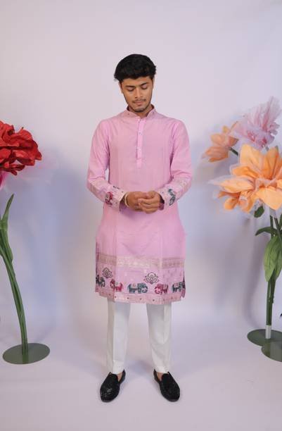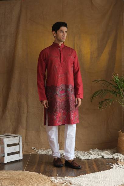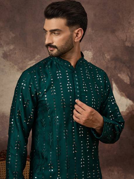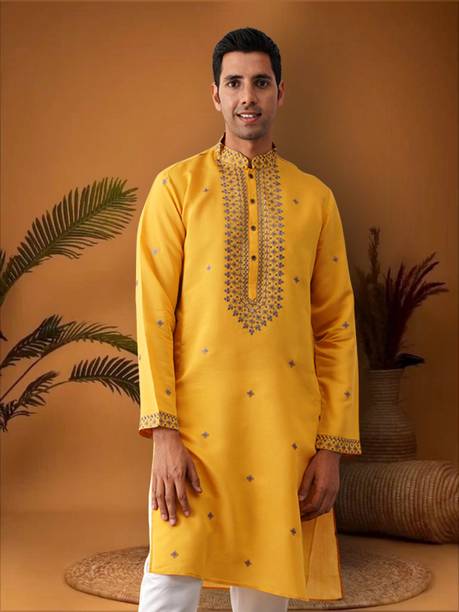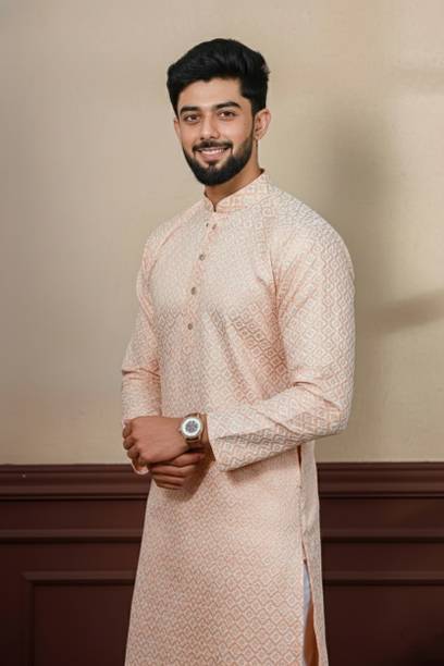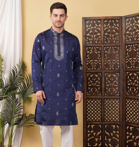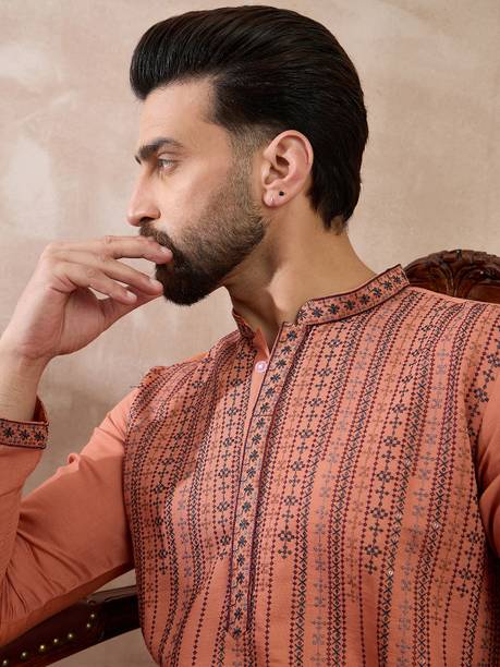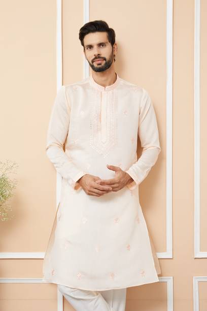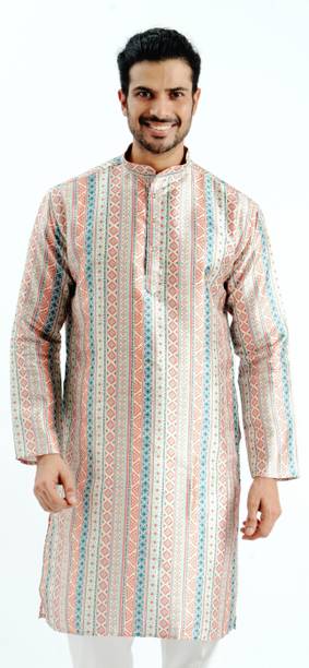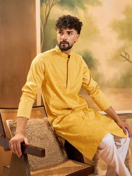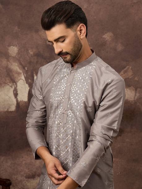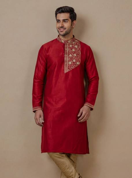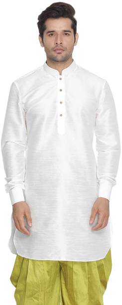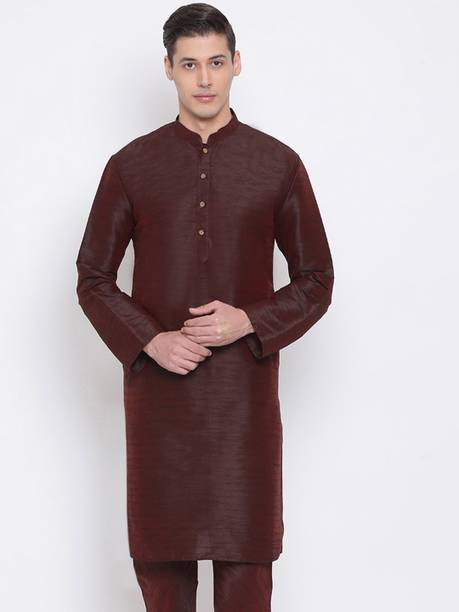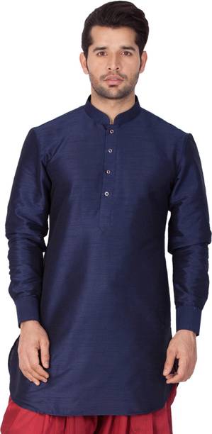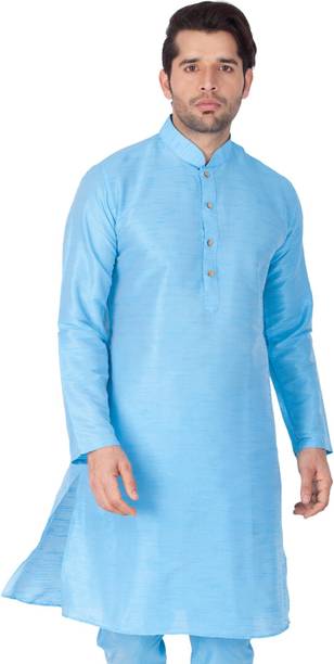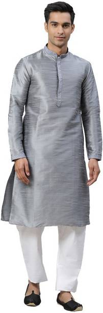 No ethnic outfit can match the beauty and elegance of a classic silk kurta for men. There was a time when men’s ethnic fashion was limited to regular kurtas in the same old cuts and patterns. With the ever-changing fashion needs, different brands have come up with creative designs and fashionable collections to meet the growing demands of many fashion-forward men. Look dapper in a classic straight-fit knee-length silk kurta for any special occasion like a festival or a wedding. The soft lightweight fabric is comfortable and easy to wear for a long time. From classy formal to royal festive and party kurtas, you can pick from a wide range of alluring kurtas as per your style and preferences. A gorgeous silk kurta paired with complementing footwear can enhance the overall look of your ensemble. Check out the extensive collection of men’s kurtas from popular brands like Step Shoes, Vastramay, Pehanaava, Hummingo, Vastra Mania, Fabplus, and many more. Available in diverse designs and unique patterns, a raw silk men’s kurta is undoubtedly everyone's all-time favourite. Browse through an array of fine collections and pick a men’s silk kurta pyjama set online for your next festive event. Pick your favourite pieces from a vast selection of trending styles without compromising on quality.