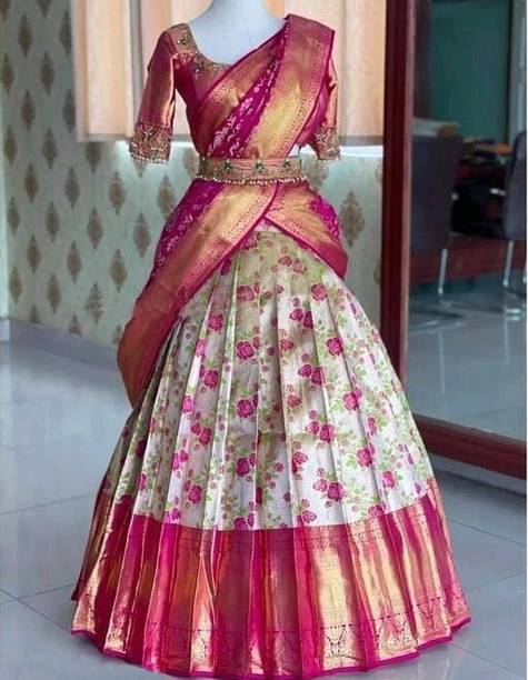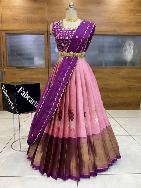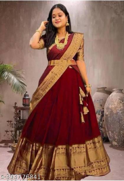 Silk lehenga choli is traditional Indian apparel for festive occasions. The classic long colourful skirts with matching short blouse tops are tailored with finesse to give a sophisticated look at weddings, engagements, parties, and festivals. There are varieties of basic styles such as lehenga and crop top, lehenga and kurta, lehenga with jacket, lehenga skirt, Rajasthani Poshak, etc. Many patterns, such as leheriya, bandhani, appliqué, polka print, floral print, etc., can be accessed online. The cholis have various themes such as gold accents, broad borders, brocade, red and gold, Ikkat prints, etc. Additional fabrics are attached to the silk lehenga choli sets, such as net, taffeta, nylon net, velvet, embroidered borders, etc., to add to the grandeur. With varied silk qualities like raw silk, art silk, pure silk, silk-wool blend, silk-cotton blend, etc., you may choose from the appropriate type that suits the occasion. Different sleeve patterns, such as full sleeves, half, short, three-fourth, sleeveless, etc., are obtainable in the lehenga choli sets. Browse through the options and select the latest silk lehenga choli (new) designs in your favourite colour and appropriate size with the best prices and exclusive offers. Buy a suitable lehenga set from brands such as Shadow & Saining, Shree Sadhi Fashion, Maakhodal, Shyam Sundar Creation,Kedar Fab, etc. The information you are reading has been last updated on 14-Oct-25.