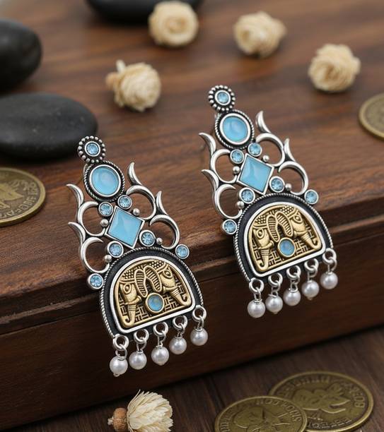 Chandelier earrings are statement earrings that are worn to grab attention. These earrings offset the graceful arc of your neck, drawing attention to your face and especially eyes. Chandelier fashion earrings can be traditional in a variety of styles, or even modern with intricate designs. Do not wear any neck piece when rocking a pair of chandelier earrings. Remember, you want your earrings to do all the talking instead of having any distractions. Choose from a wide range of chandelier earrings from brands such as Be You, Zaveri, and Styylo.