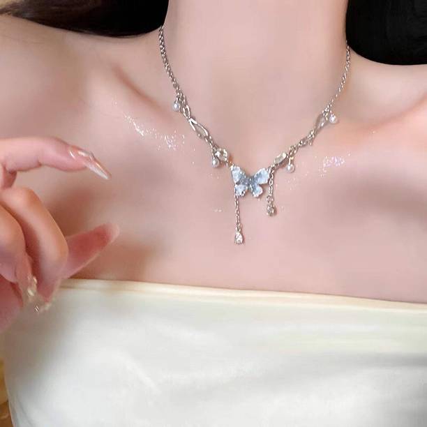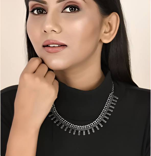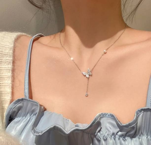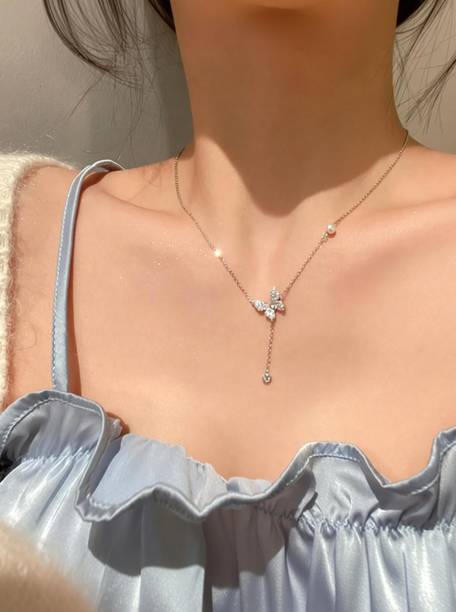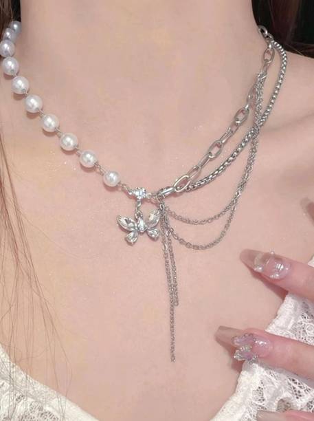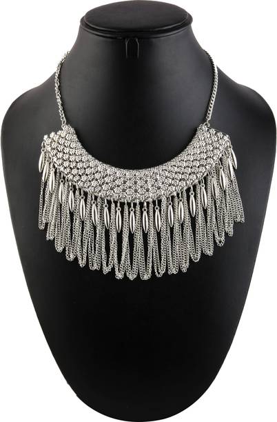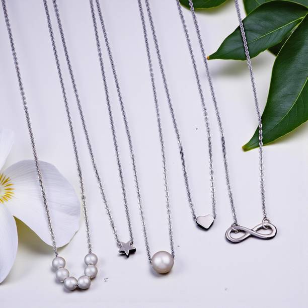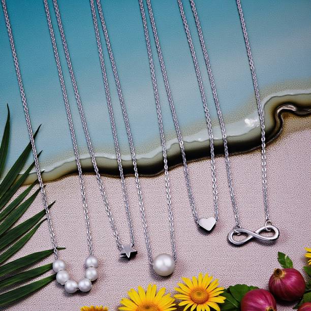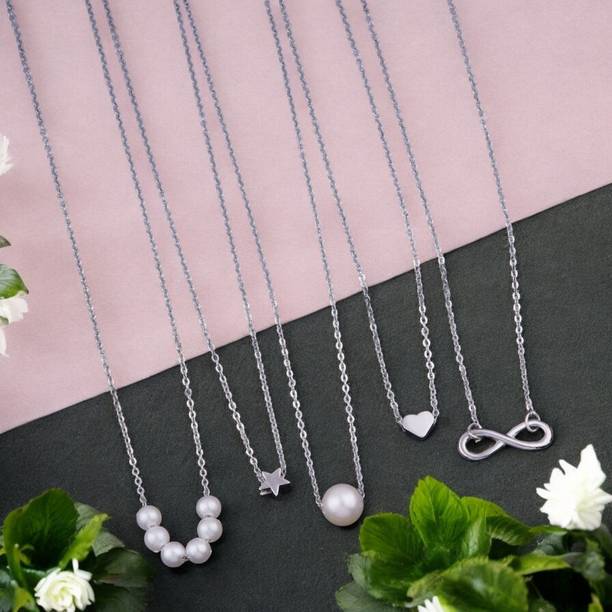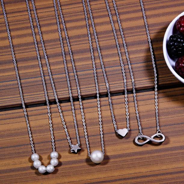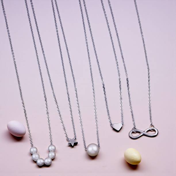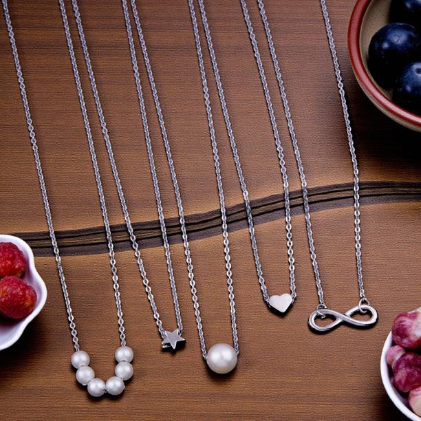 Based on the material and design there are many types of necklaces available in the market. Silver necklaces can be made of pure sterling silver or silver-plated alloy. Some of the other materials used for making necklaces are acrylic, brass, bronze, gold and copper. They are then plated with silver for a beautiful shine. Some popular types of silver necklaces available online are silver chains, pearl necklaces, chokers and bohemian neckpieces. There are also some neckpieces that come with pretty little gemstones attached with them.