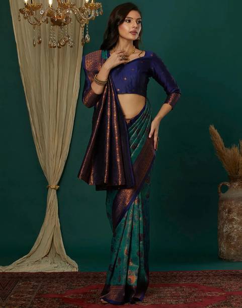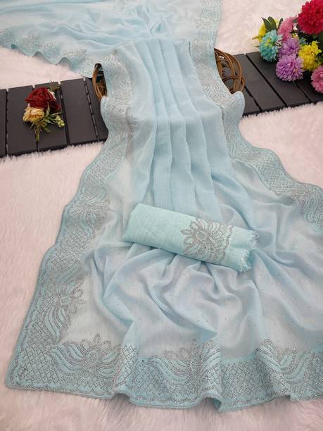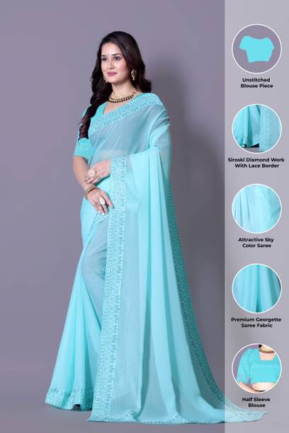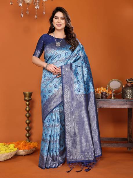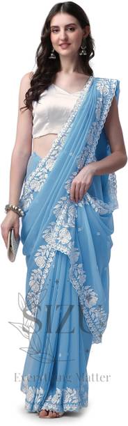 Kalamkari or Banarasi sarees are traditional apparel that can add oomph to your festive look. A sky blue saree is a must-have in your wardrobe as it looks appealing. Check out the various saree styles, patterns, fabrics, and themes available online in the sarees and make your decision. Scroll through the collection and pick a saree of your choice for the upcoming event you have to attend. Sarees are available for events like parties, weddings, celebrations, and everyday wear. Explore the different themes available in the sky blue drape wear, like stonework, Banarasi motif, gold accents, sequins, foil print, organza flowers, Banarasi Brocade, etc. There are saree types like Chettinadu, hand Batik, Ikkat, Dharmavaram, Kalamkari, Leheria, etc. Wear a saree in a blue theme with oxidised silver jewellery and matching footwear for an exquisite traditional look. You can also pair this attire with ethnic jewellery like meenakari, jhumki earrings, kundan, filigree, etc. Choose a saree style from regular, stitched, lehenga, 9 yards and others. Select the desired fabric, like cotton silk, georgette, pure silk, dupion silk, velvet, viscose rayon, etc., based on your comfort. Buy a sky blue saree online from brands like The Ethnic Saree Studio, Krishnaa Fashion, Shrijiya Fashion, Naishu Trendz, Janvi Boutique, etc.