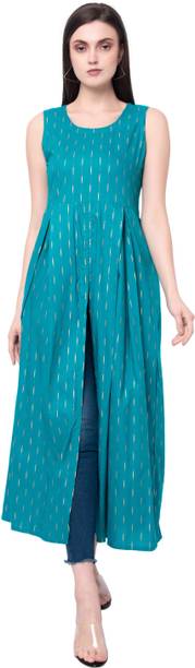 Slit kurtis are beautiful ethnic wear that most women prefer. The design makes them ideal for occasions and ceremonies. You can pair these with palazzos, dhoti pants, leggings, Patialas, wrap-around pants, etc. The best designs in the latest slit kurti collections are beautiful bagru prints, sequined kurtas, phulkari prints, chikankari prints, flared foil prints, and more styles. You can choose from patterns like beautiful patchworks, textured, embellished, embroidered, and polka-dotted designs. These ethnic garments are available in beautifully woven fabrics such as cotton blend, rayon, chiffon crepe blend, denim blend, nylon, net, muslin, etc. You can wear these for ceremonies, religious functions, office parties, casual outings, etc. Choose from a large selection of front-slit, A-line, side-slit, Anarkali, trail cut, Pathani, and asymmetric looks. You can add a dupatta to your look or even go for an ethnic jacket with embroidered textures to complete your ensemble. Choose from various sleeves and kurtis lengths to fit your styles. You can get these slit kurtis in vibrant shades of yellow, pink, red, blue, dark green, orange, and silver. Compare the features of your picks and buy these ethnic dresses from popular brands like Fashion Mint, Max, Biba, W, Aurelia and more. The information you are reading has been last updated on 20-Oct-25.