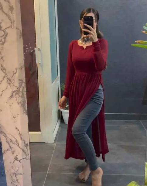 Slit kurtis are beautiful ethnic wear that most women prefer. The design makes them ideal for occasions and ceremonies. You can pair these with palazzos, dhoti pants, leggings, Patialas, wrap-around pants, etc. The best designs in the latest slit kurti collections are beautiful bagru prints, sequined kurtas, phulkari prints, chikankari prints, flared foil prints, and more styles. You can choose from patterns like beautiful patchworks, textured, embellished, embroidered, and polka-dotted designs. These ethnic garments are available in beautifully woven fabrics such as cotton blend, rayon, chiffon crepe blend, denim blend, nylon, net, muslin, etc. You can wear these for ceremonies, religious functions, office parties, casual outings, etc. Choose from a large selection of front-slit, A-line, side-slit, Anarkali, trail cut, Pathani, and asymmetric looks. You can add a dupatta to your look or even go for an ethnic jacket with embroidered textures to complete your ensemble. Choose from various sleeves and kurtis lengths to fit your styles. You can get these slit kurtis in vibrant shades of yellow, pink, red, blue, dark green, orange, and silver. Compare the features of your picks and buy these ethnic dresses from popular brands like Fashion Mint, Max, Biba, W, Aurelia and more. The information you are reading has been last updated on 21-Oct-25.