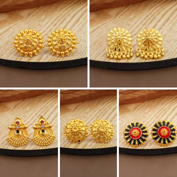 Delicate jewellery can uplift your look for various occasions. Check out small gold earring designs that can be suitable to style with various outfits for a glitzy ensemble. You can make a sophisticated style statement with these ornaments, whether it is at a grand traditional function or a casual get-together. Choose from different base materials, like acrylic, alloy, aluminium, bone, brass, bronze, enamel, and many more. The wide variety offers a selection for you as well as for your precious little ones, at varied prices. Explore an array of designs, from simple and subtle to detailed and intricately crafted earrings. These small earrings are also available in various themes like ethnic statement drop earrings, oversized studs, pearl jewellery, meenakari and Kundan jewellery, and many more. These ornaments can add an enigmatic charm to your overall appearance. Whether you are shopping for yourself or thinking of gifting them to your loved ones, these earrings have something for all. Stay trendy with the latest styles of these earrings. Brands that offer such a variety of earrings include Vembley, Yellow Chimes, Jewels Galaxy, Arzonai, Brado jewellery, Nagneshi Art, and many more. Explore these beautiful small gold earring designs online that combine contemporary vibes with timeless elegance. Explore your options and select the best ones for yourself with ease.