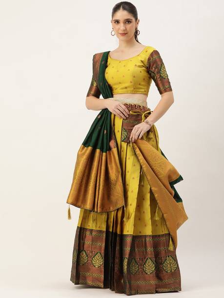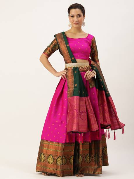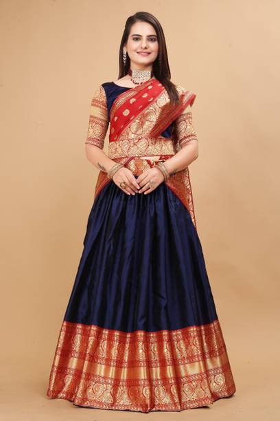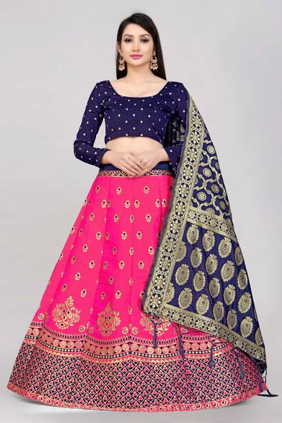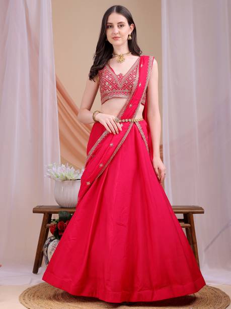 Look fabulous in dazzling straight-cut lehengas. These elegant garments come in many styles, patterns, fabrics, colours, and choices of sleeves and necklines. You can adorn the three-piece lehenga-choli-dupatta with desi accessories like jhumkas, ear cuffs, bangles, tikka, gem-encrusted necklaces, kundan chokers, and many more. Check out straight lehengas in fabrics like pure silk, cotton blend, satin, satin blend, nylon blend, poly silk, net, dupion silk, and jacquard. You can also choose your choli and dupatta materials from comfortable fabrics like silk, satin, pure silk, cotton, art silk, net, and more. Mix and match your styles in shades of purple, dark blue, green, pink, black, silver, etc. Drape yourself in beautifully embroidered, printed, mirror work, lacework, stonework, satin lining, self-designed, and floral patterned lehengas for all occasions. You can wear these to marriage ceremonies, religious events, family functions, etc. You can choose from necklines like round neck, U-neck, sweetheart neck, etc. Find sleeves in different lengths for all seasons. You can opt for short sleeves and sleeveless for summers. As for winters, long-sleeved garments feel more comfortable. You can compare from many choices online and find yourself the traditional outfits that blend your aesthetics. Pick straight-cut lehengas from popular brands like W, DHARMI FASHION, Blissta, La Donna, Rathi Silks, etc.