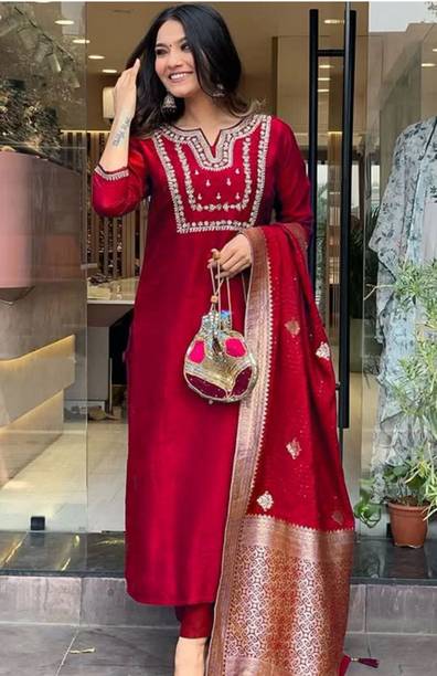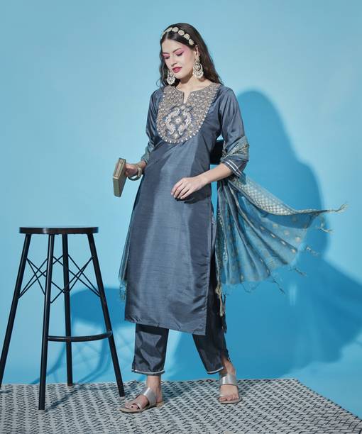 There is an unmatched magnificence when it comes to ethnic suits. Obtain the suit sets that come as a set of kurtas, suit pants, and dupattas or jackets. The pants complete the look of the ethnic collection. They are a combination of simplicity and class, and the fabrics exhibit an affluent and fashionable look. Most suit pants come in ankle-length style, providing a modern tone. Only the hemlines are embroidered or printed in some pant models, giving a unique look to the whole outfit. The waistlines can be elasticated, semi-elasticated, or just a drawstring. You can decide on the one that suits you best. Few designs come with a side or rear zipper closure, which makes it easy to put on. The pants come in various styles-palazzos, shararas, pleated trousers, culottes, and more. Brands that offer pretty suits online are Allen Solly, Vero Moda, Sunart Fab, Hopscotch, and Biba. You can pair these outfits with juttis, ethnic mules, etc. The silhouettes are versatile, and you can find all the sizes online. The patterns are the ones to look out for that speak out about India's rich traditions and art. So browse through and buy stunning outfits online.