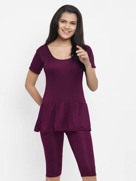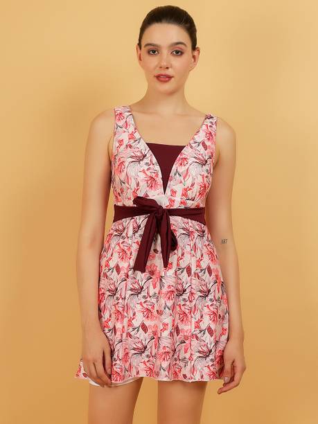A swimsuit for women is a must-have apparel for ladies and girls who love to spend time in the pool. Whether it has a fully clad design or a bikini style, women can opt for any pattern they are comfortable in. You can choose a one-piece suit that covers your skin or a two-piece style that gives you the opportunity to tan well. Choose from the different types available such as swim-dress, bikini, tankini, monokini, swim bottom, etc. There are various patterns accessible in the swim attires, such as floral print, geometric print, polka dots print, striped, self-design, etc., in multiple colour combinations. They are crafted using a variety of fabric blends such as spandex-polyester, nylon-elastane, polyester-PBT, polyamide-elastane, cotton-spandex blends, etc. The suits are obtainable with attractive offers and the best price options online. Browse through the scores of styles in swimsuits for women and select the favourite option in an appropriate size. Buy the latest swimsuit for women (new) collections from brands such as Modern Mode Collection, Marks & Spencer, The Kaftan Company, mod & shy, Urban Trend Garments, etc. Order the swimwear online from the comfort of your home and have them delivered to your doorstep, hassle-free. The information you are reading has been last updated on 02-Jan-26.