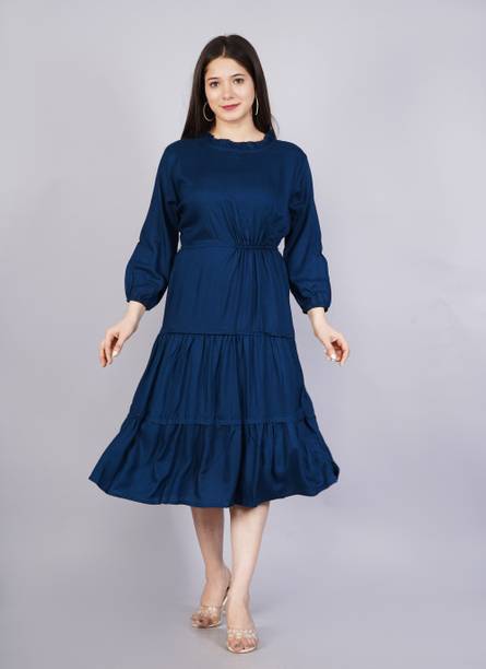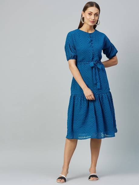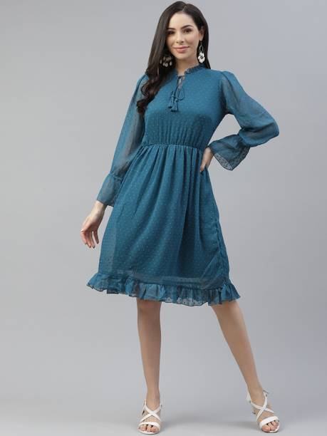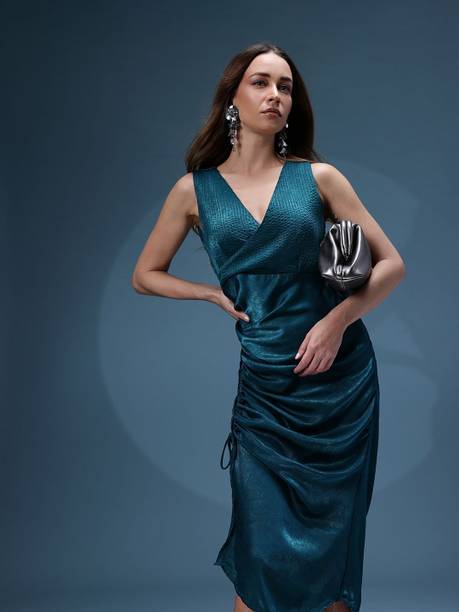 A teal blue dress is one of the latest styles that can be worn for formal or casual occasions. Ethnic or western, festive or maternity, you may choose the desired style that suits your purpose. You can choose from several shades of teal and wear them according to your needs. These dresses are available in varying lengths: the knee, below the knees, above the knees, calf-length, ankle-length, mini, maxi, etc. Many new varieties like bodycon, free-flowing, A-line, shirt type, gathered, fit and flare, high low, sheath, gowns, saree dress, layered, jumpsuits, kaftan, etc., are available online. You can select the sleeve pattern from long, half, three fourth, cap, puff, bell, bishop, bat wings, and many more. Choose the fabric as per your comfort level and the weather. Some online options are cotton, polyester, rayon, crepe, viscose, georgette, chiffon, polycotton, lycra, lace, and more chic blends. Printed, solid, polka dots, floral, striped, colour blocked, double shaded, embroidered are some of the themes you can choose based on your preference. Wear a short dress with matching heels or an ethnic dress with sandals for a beautiful and trendy look. Buy a teal blue dress from trusted brands such as Allen Solly, AND, ATHENA, Dressberry, Fashion Dream, GINI & JONY, etc. Order the dress online from the comfort of your home for convenient home delivery. The information you are reading has been last updated on 27-Feb-26.