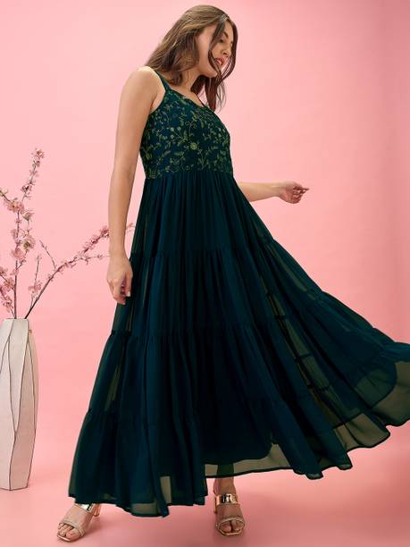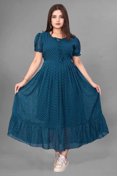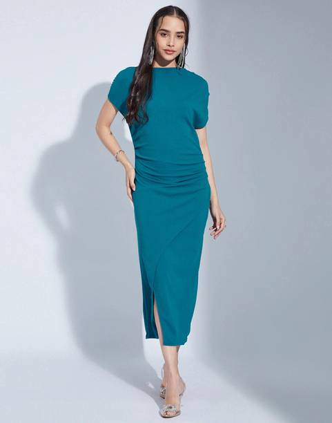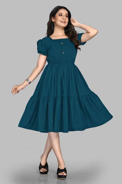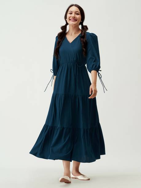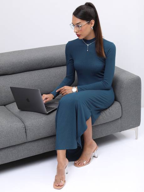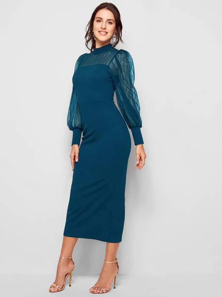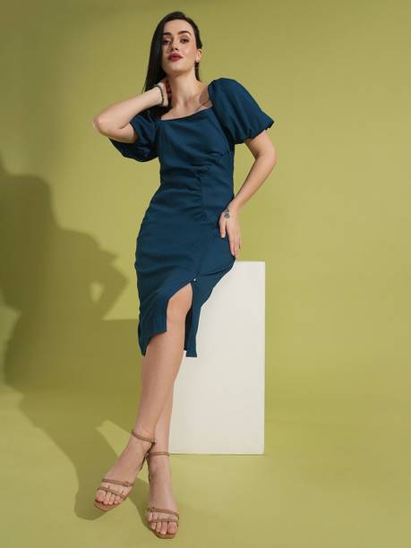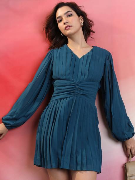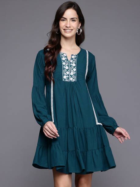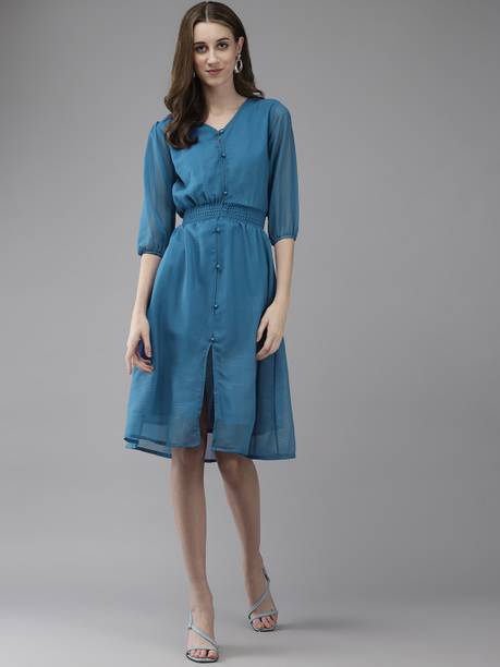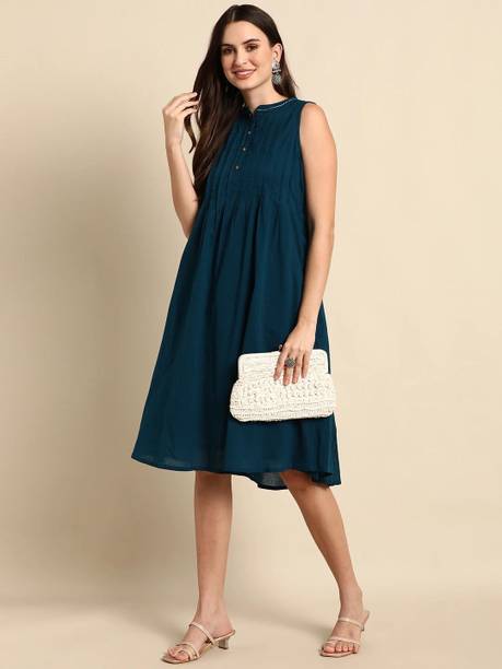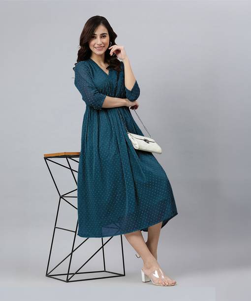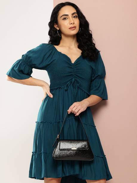 A teal blue dress is one of the latest styles that can be worn for formal or casual occasions. Ethnic or western, festive or maternity, you may choose the desired style that suits your purpose. You can choose from several shades of teal and wear them according to your needs. These dresses are available in varying lengths: the knee, below the knees, above the knees, calf-length, ankle-length, mini, maxi, etc. Many new varieties like bodycon, free-flowing, A-line, shirt type, gathered, fit and flare, high low, sheath, gowns, saree dress, layered, jumpsuits, kaftan, etc., are available online. You can select the sleeve pattern from long, half, three fourth, cap, puff, bell, bishop, bat wings, and many more. Choose the fabric as per your comfort level and the weather. Some online options are cotton, polyester, rayon, crepe, viscose, georgette, chiffon, polycotton, lycra, lace, and more chic blends. Printed, solid, polka dots, floral, striped, colour blocked, double shaded, embroidered are some of the themes you can choose based on your preference. Wear a short dress with matching heels or an ethnic dress with sandals for a beautiful and trendy look. Buy a teal blue dress from trusted brands such as Allen Solly, AND, ATHENA, Dressberry, Fashion Dream, GINI & JONY, etc. Order the dress online from the comfort of your home for convenient home delivery. The information you are reading has been last updated on 01-Jan-26.