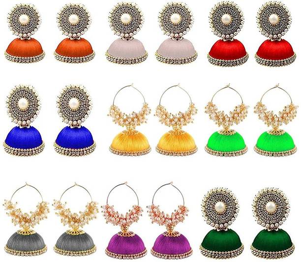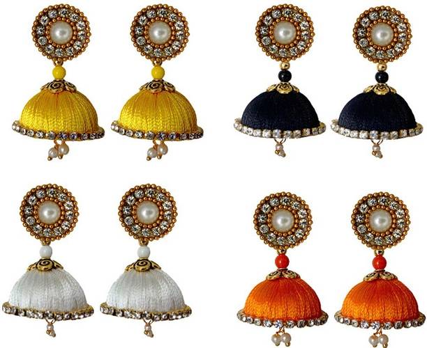 Gold, silver and copper are some common materials we come across while shopping for jhumkas, but have you ever worn a pair of silk thread jhumkas? If you haven’t, all you have to do is browse through the collection of earrings for women available online from brands like Krishnaa and Jewlot to know what you have missed. Soft, lightweight and noiseless, silk thread jhumkas are comfortable to wear and easy to carry out. And the bright colors that they are available in makes them very stylish too. You can sport a pair of silk thread jhumkas with jeans for an Indo-Western look, with ethnic salwar suits, Kanjivaram sarees and if you’re creative, even with dresses and skirts. These earrings for girls are available online in various combo packs so you can easily shop for an interesting collection in different colors to suit your personality and tastes. So, let’s now have a look at a few styles that you can explore while shopping for silk thread earrings for women online: