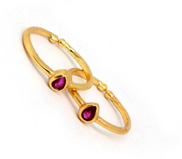 Gold Enamelled Toe Rings - According to changing trend and fashion, nowadays antique golden finish toe rings are in more demand. Like the Sushito Floral Alloy toe ring which has antique gold-toned finish. The designs, sparkling stones and enamel work toe rings are available online and its royal look is the center of attraction.