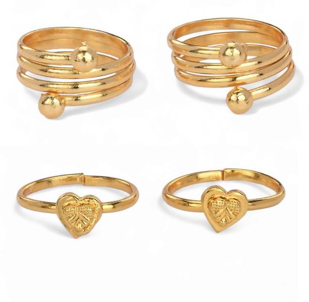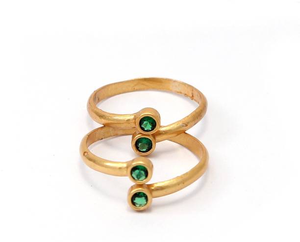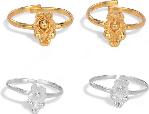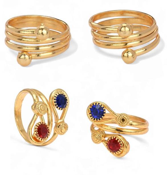Gold Enamelled Toe Rings - According to changing trend and fashion, nowadays antique golden finish toe rings are in more demand. Like the Sushito Floral Alloy toe ring which has antique gold-toned finish. The designs, sparkling stones and enamel work toe rings are available online and its royal look is the center of attraction.