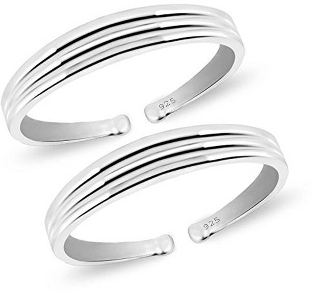 STYLEEJEWEL 92.5 Sterling Silver Double Line Plain Toe-rings (Bichhiya) for Women Sterling Silver Silver Plated Toe Ring