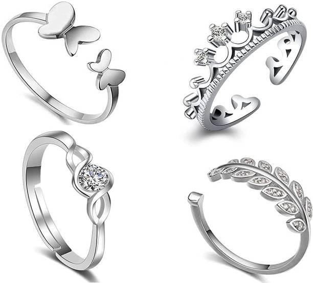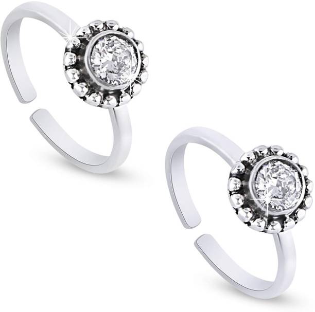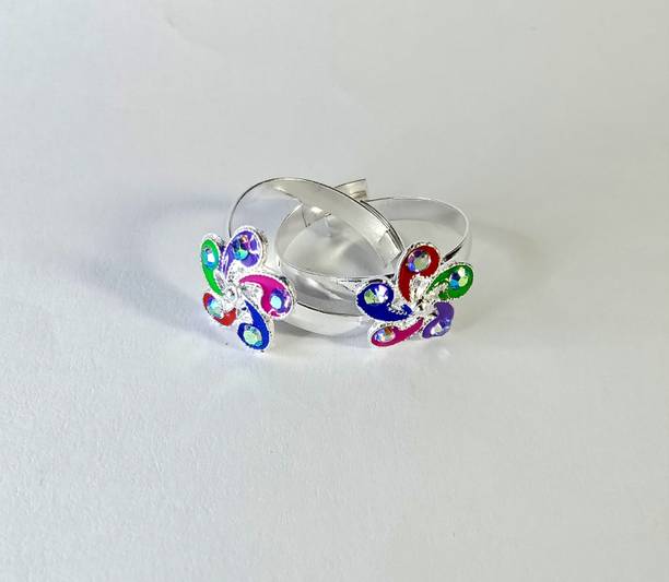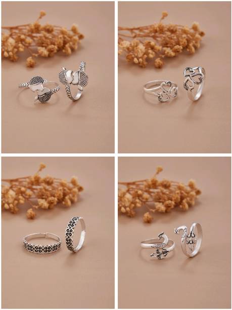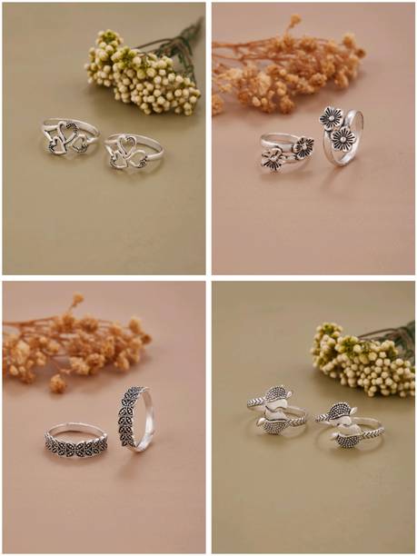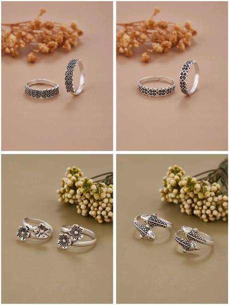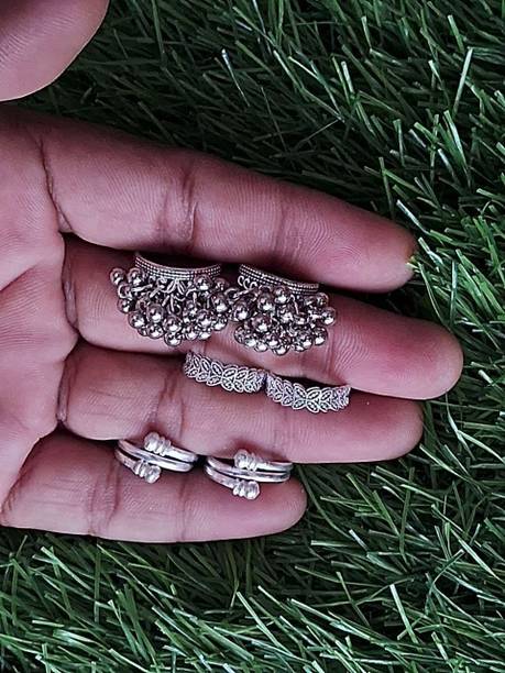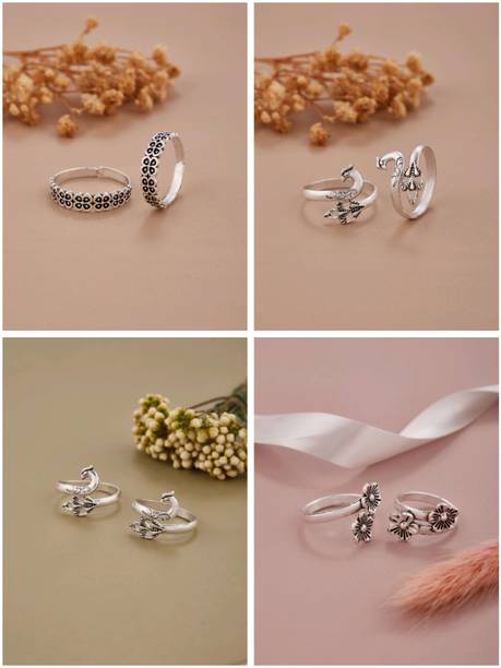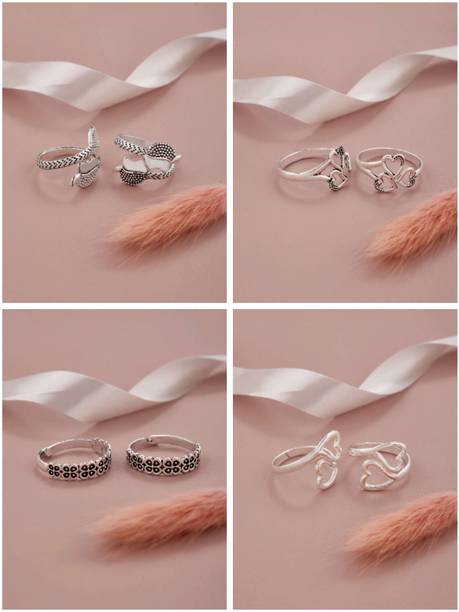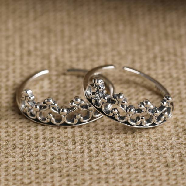 Heer Collection Colourful Traditional Look Antique Metal Silver Plated Adjustable Lightweight German Silver Toe Ring For Women Ladies & Girls ( 1 Pair ) Metal Silver Plated Toe Ring