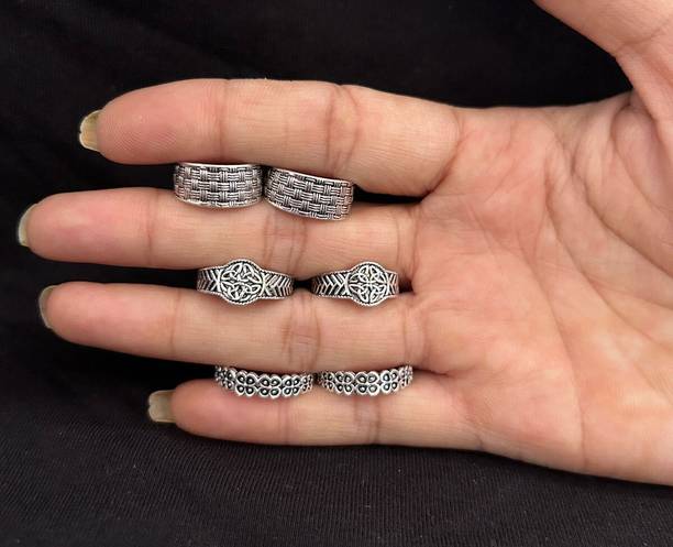 Three Finger Toe Ring - Three finger toe ring is the set of toe rings attached by the loop between the fingers. This type of toe ring is also known as pola. Silver being a good conductor adsorbs the polar energy from earth and transmits to body which gives a positive energy making it the best used metal for creating toe rings.