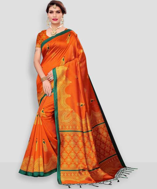 Woven with pure mulberry silk, Kanjivaram sarees mainly originate from Tamil Nadu and are especially popular in the South. Temple borders, floral designs, stripes and checks are some of the most common designs that you’ll find Kanjivaram sarees available in. While shopping for Kanjivaram sarees from Mimosa, you’ll find some lovely handloom Tussar silk sarees that can make you look really elegant at a wedding. If you are looking for something less expensive to fit your budget, you also have a range of art silk sarees in stylish and trendy designs.