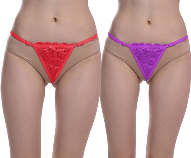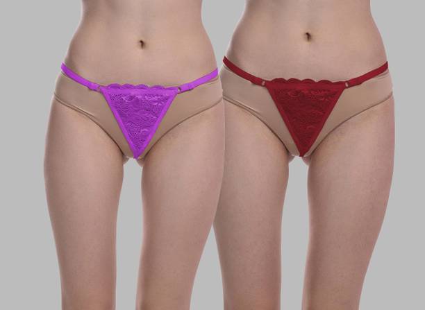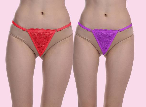 Pack of 2 Women Thong Red, Purple Panty
