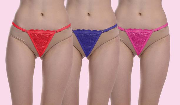Pack of 3 Women Thong Red, Blue, Pink Panty