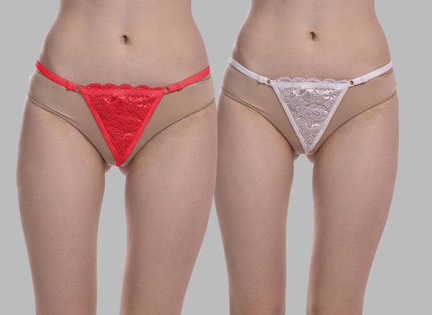 Pack of 2 Women Thong Red, Brown Panty