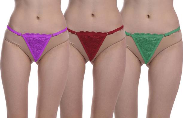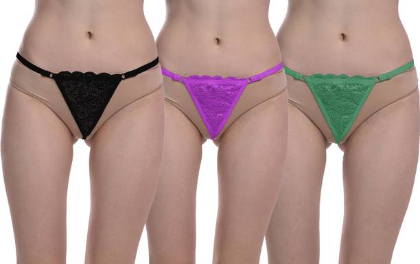 Pack of 3 Women Thong Black, Purple, Green Panty