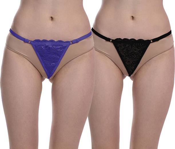 Pack of 2 Women Thong Blue, Black Panty