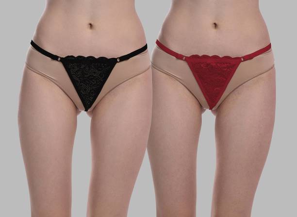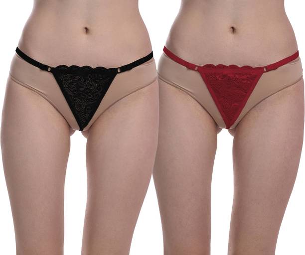 Pack of 2 Women Thong Black, Maroon Panty
